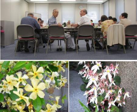 今日は句会の日。いつものように午前中に出句する5句を選び最終の推敲を行った。前回は先生選がゼロだったので、今回は少し力を入れた積りだったが・・・句会の結果は、先生から1句が選ばれ、仲間から3句が選ばれ、1句はだれからも選ばれなかった。先生から選ばれたのは次の句。 童顔の 武者人形の 太り気味仲間から選ばれたのは、次の句。 牡丹寺 人人牡丹 人牡丹(5票) 顔と名の やうやく一致 して五月(5票) 豊かなる 命育む 夏の潮(1票)誰からも選ばれなかったのは、次の句。 駅弁や 卯の花腐し また楽し今日先生の特選に選ばれたのは次の5句だった。 ◎回廊を 登るや牡丹 牡丹かな 利太郎 ◎日本の 天下取る顔 武者人形 隆司 ◎母の日の 母なる娘 厨妻 愛子 ◎音たてず 花びら散らす 牡丹かな 可奈子 ◎目白待つ 三脚径に 目白押し 幸男今日の最高得点句は、先生の次の句。 帆船の 白き五月の 風孕む 塩川雄三先生(9票)生徒の最高得点は次の句。 夏の潮寄するも引くも煌きて 豊子(6票) 何事も程ほどがよし古茶淹れる 球代(6票)下記は句会風景。下の花は途中の家の玄関先に咲いていたもの。名前はまだ調べていない。句会果て ビールで忘る 出来不出来右の花はユキノシタと判明。