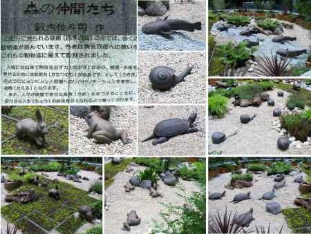 今日は、午前中はテレビでNHK俳句、日曜美術館、サンデープロジェクトなどを見て過ごし、午後は、大阪警察病院に入院している義弟の見舞に行った。病院の1階ロビーに円形のスペースがあり動物の彫刻が置かれているのに興味を持ってじっくりと観察した。作者は薮内佐斗司、彫刻の題名は「森の仲間たち」。ナマズ、カタツムリ、ウサギ、カエル、カメ、チョウなどの動物が数匹ずつ置かれている。説明文には、次のように書かれてある。「人間には自分で病気を治す力(ナマズ)があり、検査・手術を受けるためには忍耐力(カタツムリ)が必要です。そして(ウサギ)のようにピョンピョンと回復へのリハビリテーションを実施し、退院(カエル)となります。また、人々が健康で幸せな長寿(カメ)を全うするとともに安らかな人生(チョウ)の終焉を迎えられるように願っております。」 ロビーには壁画も書かれているとのことだが、これは見過してしまった。写真は、説明文と動物の彫刻亀・蛙 鯰も森の 仲間たちなお、薮内佐斗司という彫刻家について私は知らなかったので、ウェブで調べてみたところ、本人のホームページが作られていた。仏像関連の彫刻を得意とし童子ものが人気があるそうだ。また、今、NHK教育テレビ「知るを楽しむーこの人この世界」で毎週月曜日午後10時25分~10時50分「ほとけさまが教えてくれた仏像の技と心」という番組に出演しているそうだ。明日からでも見てみたいと思う。