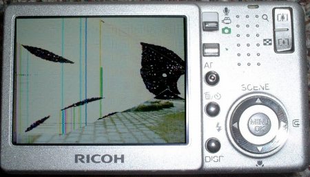 今日は、午前中はパズルを考えて過ごし、午後は心斎橋へ買物に出た。パズルはあまり進展はなかった。考え方を変えた方がよいかも知れない。買物は、家内に付いて行ったもので、私は喫茶店で一人で待っていた。涼しいところで俳句の宿題を考えながら過ごした。帰宅すると、先週修理のためメーカーに送っておいたデジカメが返っていた。まる10日間、デジカメのない(実際は古いデジカメを使う)生活を余儀なくされたが、明日からまた持ち歩くことができる。カメラが壊れた原因は液晶部分が圧迫されたため液晶が潰されたもの。ポケットに入れ満員電車に乗ったとき押されて何かにぶつかったらしい。帰宅するまで壊れたことに気づかずどこで壊れたのかも思い当たらなかった。今後はケースに入れて持ち歩くなど運搬には細心の注意が必要なことを思い知った。写真は、修理前の液晶が壊れたデジカメ。デジカメの 修理が終り 梅雨晴間