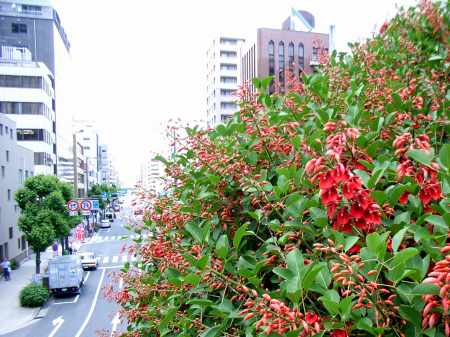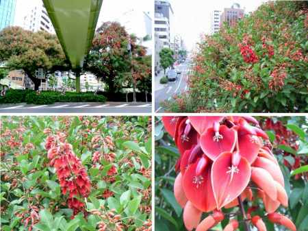 今日は朝から、臨時句会の清記用紙を仲間に送付いしたあと、一昨日と昨日のブログを書くべく写真の整理などを行った。臨時句会の清記用紙を送ってしばらくすると、仲間から順次選句が送られて来た。最後の選句を待ってまとめを行った。ブログの作成は後回しにする。総員6名なので、満票は5票だが、最高点は3点で4点句もなかった。総じて出来が悪かったということだろうか。ただ、通常は5句出句で7句選句なのに今回は10句出句で10句選句で、票が分散してしまったのだろう。海紅豆という題が出された背景はこうだ。句会の会場の近くに歩道橋がありその歩道橋を挟んで2本の海紅豆の大樹がある。海紅豆といえば梯梧で沖縄の木のはずなのに、大阪の地で元気良く育っている。交通量もを多く排気ガスにさらされているのにお構いなしの感がある。6月になると赤い花を付ける。豆科の植物だから花の形は豆類の花に似ているし実れば鞘つきの豆が出来る。歩道橋を超える高さになっていて歩道橋を渡るとき花に触れることができる。ほかでは余り見ることはできないので、よく観察して句にしたいと、先生は考えられたのだ。先生の選20句の中に、利太郎さんは6句、卓宏さんは5句、隆司さん、幸男さんと私は3句ずつ入った。3点句は7句で、利太郎さん、卓宏さんの句が多かった。 激戦を 忘れ平和に 梯梧燃ゆ 利太郎 排気ガス ものともせずに 花梯梧 利太郎 陸橋を 渡つて触るる 海紅豆 利太郎 これはこれは こんなところに 海紅豆 壽雄 枝先を 真紅に染めて 海紅豆 卓宏 海紅豆 大いなる陰 広げをり 卓宏 海紅豆 浪速の空を 突き抜けて 隆司私が出句した10句のうち1票でも入った句を揚げておく。 海紅豆 意外に小さき 豆の鞘 (先生ほか1) 海紅豆 真赤な嘘の やうな花 (先生ほか1) 梯梧見る ためにわざわざ 橋渡る (2票) 海紅豆 花一輪を 栞とす (2票) 堂々と 自己主張して 海紅豆 (1票) ひめゆりの 霊に捧ぐる 花梯梧 (1票) 梯梧咲く 天満天神 栄えよと (1票)最後に先生の句を紹介する。皆いい句だ。以下、私がいいと感じた順に・・・ 海紅豆 かっと太陽 掴みをり 花期長き 梯梧の花の 咲きだせり 梯梧咲く 車塵の多き 市街にて 海紅豆 歩道橋より 高く伸び 海紅豆 紅を殊更 強調し 街路樹の 一樹にて咲く 海紅豆 海紅豆 鋭き刺を 隠しゐて 海紅豆 大き刺にて 近づけず 陸橋の 長き階段 海紅豆 情熱の花 情熱の 花梯梧 (以上10句、塩川雄三先生) 写真は、歩道橋より高く伸びた海紅豆を歩道橋の上から写す。天神橋一丁目からJR天満の方を望む。海紅豆 天満天神 栄えあれ臨時句会のまとめを優先したため、一昨日、昨日のブログの完成は今日の夕方になってしまった。