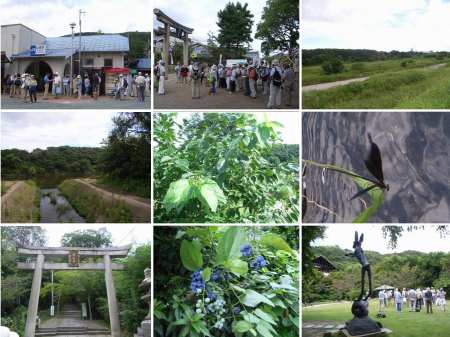 今日は、午前中は、ほろよい句会のまとめをしたり、NHK俳句王国を見たりして過ごし、午後は、緑懇会のイベントで大山崎の地形と自然を散策した。俳句王国は有名な俳人ばかり7人の豪華な顔ぶれで俳句も流石と思われる名作揃いだった。特によいと思った句は次の句。 伊予芋が 好き昇さんも 清さんも 有馬朗人 手の内を 明かせば誰も 芋が好き 相原左義長 閑日の 風雨は愉快 芋畑 宇多喜代子 畦川に 仕掛けてありし 芋水車 星野椿 芋茎干す 筵一枚 空ひとつ 廣瀬直人 今日の案内は、地元に詳しい加藤武先生だった。JR山崎駅に13時半に集合。先ず駅前の離宮八幡宮の境内で山崎の地形・歴史などの説明を聞く。斉藤道三もここの出身だそうで、境内に油祖の銅像がある。境内を出て国道に出ると三川合流地点が見渡せる。少し降りて桂川の終点近くまで行ったが、今日は格別に蒸し暑かったので、さらに奥に行くことは止め、早々に国道へと引き返した。ここは、山城と攝津の境で両方に山が迫った谷合となっており、三川が通っているほか、JR線、阪急、新幹線、国道、名神などが通っている交通の要所なのだ。国道沿いに三川合流地を見ながら東に進んだあと、今度は旧道沿いに東に進む。畳屋など古い町並みが残っている。聖天宮のバス停のところを左折してJRをトンネルで横断すると、険しい階段が待っている。聖天宮への途中の階段で休憩し、聖天宮や植生の話を聞く。その後、道を西に進み、大山崎山荘美術館に着いた。ここは、大正期に加賀正太郎が建てた山荘で、戦後無人で荒れ放題となっていたところ、昭和後期にマンション建設計画が持ち上がり、それに対して地元民が保存運動を起こし、京都府の斡旋で、美術館に改装することが決まったものだ。ここにも自然と調和した植生が見られた。今日の会でも、いろいろな自然に触れ合うことが出来、いろいろな花や実を見つけることができ、有用な一日となった。写真は、JR山崎駅集合、離宮八幡宮、三川合流地点、木津川の最終、クワ、ハグロトンボ、山崎聖天宮、ツヅラフジ、大山崎山荘美術館大山崎 河原に群るる 糸蜻蛉今日のプロ野球。阪神は中日に勝ったが巨人も勝ったため、阪神の優勝確率は少しだけ上がるに留まった。