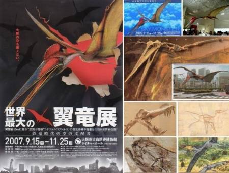 今日は、朝のうちは雑事で過ごし、昼前から、大阪市自然史博物館で開催されている「世界最大の翼竜展」を見に行った。副題に「恐竜時代の空の支配者-翼開長10mに及ぶ“空飛ぶ怪物”「ケツァルコアトルス」の復元骨格や貴重な化石を世界初公開!」とあるように、今回の目玉は、「ケツァルコアトルス」だった。翼竜というのは、三畳紀(2億2000万年前)からジュラ紀、白亜紀(6550万年前)にかけて1億5千万年間に渡って地球上に君臨してきた空飛ぶ動物で、大きさはスズメくらいのものから小型飛行機くらいのものまでいた。現在の動物にはその子孫は存在せず、独特の骨格、飛び方、歩き方をしており、鳥類とはまったく異なるものであった。翼竜の化石は1801年に発見されたがそれが翼竜と推定されるまで100年を要したそうである。 陸の恐竜と共存し、晩年は、ジュラ紀後期に現われた始祖鳥の子孫の鳥類とも共存していたが、次第に大型化し、そのため遂に絶滅してしまったそうだ。展示会は、1.翼竜とは 2.生態と進化 3.翼竜の絶滅 の3つに分かれていた。本物の断片化石、復元化石、復元模型、CG合成映像などいろいろな形で展示されていた。ただ、翼竜については分ったが、他の恐竜や当時の動物・植物との関係などについては、殆ど説明されていなかったのは残念であった。どのようにして共生していたのであろうか?会場は、休日でもあり、子供連れが多かった。展示品は珍しく「撮影禁止」の表示はなかったので、みんなケータイやデジカメでしきりに記念写真を撮っていた。この展示会は11月25日まで。画像はパンフレット、看板、展示品の実写などより。左:ケツァルコアトルス。空を飛ぶ姿、復元模型、化石、CG画像。アンハングエラ、生後数日のクテノタクマ、ジェホロプテルスの全身骨格復元、パオプテルスの予想図秋分の日 翼竜展に 子等多し阪神はどうかしている。4-3で勝っている8回裏2死2ストライクノーボールの場面から四球と2連打で2点を取られ逆転されてしまった。情けない。優勝確率5%以下となってはもうお仕舞い。勝敗表は掲載を中止する。
