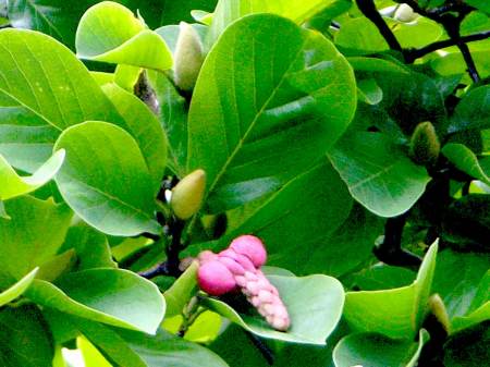 今日は、午前中、俳句誌に出句する句を作ったり選定したり清書したりして過ごし、午後はデパートへショッピングに行った。帰宅後は、今日届いた日経パソコンやパズル懇話会誌を読んだり、今日購入した「サライ」の京都特集を読んだりして過ごした。サライの京都特集号は読み応えがある。この秋、京都へ出かける際の参考にはしたい。今日の画像は、先日(15日)、大山崎山荘美術館庭で見つけたハクモクレンの実と蕾。実はコブシほど複雑ではないが、異様な形をしている。白い花の実が赤いのはコブシも同じ。この蕾は春に桜が散る頃きれいな白い花に変わる。色づきし 木蓮の実の 異な形