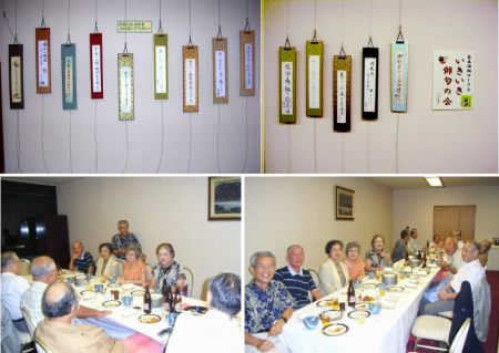 今日は、午前中は、「三屋清左衛門残日録」の続きを読み、午後は、いきいきエイジングセンターへ「エイジングまつり」の展示を見に行き、夜は、高校の同窓会に参加した。「三屋清左衛門残日録」は長編小説のような構成だが、15編の短編小説の集まりと見ることもでき、どの1編だけを読んでも筋はわかるようになっている。登場人物はある編だけしか登場しない人も多く、各編である程度の解決は付けられているが、その後のことには言及されていないので、長編小説の積りで読むと、読み終わっても何かもの足りない気がする。例えば、最初の編に登場するおうめはその後どうなったのだろうかと・・・いきいきエイジングセンターの「エイジングまつり」のイベントは、敬老の日に行われたが、展示はまだ残っている。展示を言っても俳句の短冊と俳画だけ。俳句は14点が展示されていた。 海紅豆 かっと太陽 掴みをり 雄三(塩川雄三先生) 揚花火 息もつかせぬ 早さにて 千為子 爽やかに 渡る風あり 芭蕉園 幸枝 朝市の 枝豆土の 残りをり 茲子 携帯を 孫に教はる 敬老日 隆司 漁師町 山車を校歌で 曳いて来る 卓宏 赤とんぼ 夕日と色を 競ひをり 寿雄 ひぐらしの 静寂の峡を 明けにけり 昇一 老いたれど 萎えてはならじ 花カンナ 豊子 色かたち 変らざるまま 椿落つ 可奈子 天を衝く 比叡の樹林 木下闇 球代 炎昼に 赤信号の 長かりき 幸男 揚花火 残像しばし 目の中に 洋子 空蝉の 爪立てて尚 ふんばれる 美代高校の同窓会は、関西在住のもので大体年一度開かれている。今日は、阪急グランドビルの関西文化センターに16人が集まった。みんな若々しく、ダンス、ゴルフ、手芸、大工、旅行などいろいろなことに挑戦しているようだ。写真は、上:俳句の短冊の展示、下:同窓会の模様。同窓の 友と歓談 秋の宵今日のプロ野球は、阪神が巨人に完敗し、中日がヤクルトに雪辱したため、三たび0.5ゲームの中に3チームが犇めく状態になった。阪神の優勝確率は51%に下った。
