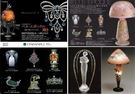 今日は、午前中は、ビデオの映画で「危険な情事」を見、昼前に家を出て、大丸心斎橋で「ベル・エポックの輝き」展を見たあと、本町と北浜で大阪クラシックを聴いた。映画「危険な情事」は、1987年のアメリカ映画、監督は「フラッシュ・ダンス」のエイドリアン・ライン。たった一度の情事、男は遊びの積り、女は本気の恋と感じ、いろいろな事件を引起す。見終わっても何か割り切れない気持が残った。「ベル・エポックの輝き」のベル・エポックはよき時代という意味。1890年~1915年頃、パリで花開いた華やかなアールデコの工芸をジュエリーやガラス器を中心に100点展示されていた。作品は、エミール・ガレ、ルネ・ラリック、ドーム、ゴートレなどの一流作家のほか、カルティエ、ショーメ、ティファニーなどの高級ブランドメーカーによるもので、ティアラ、ブローチ、ペンダント、ネックレス、指輪、ブレスレット、ソートクール、バンドー、櫛、ジュエリーケース、ペンダントウォッチ、ストマッカー、バックル、小瓶、香水瓶、花瓶、リキュール瓶、テーブルウェア、酒器、カップ、コブレット、花器、蓋物、置物、ランプ、置時計、装画パネル、立像、灰皿、印章、飾り箱などで、その精巧で気品溢れる品の数々にため息が出るほどであった。画像は、パンフレット、絵はがきより。上:ガレ「団栗紋ランプ」、ショーメ「ガーランドスタイルのストマッカー」、ガレ「蝶紋ランプ」、下:ラリック「ランプインコ」、ファリーゼ「ネオ・ルネッサンスのペンダント」、ドーム「葡萄紋花瓶」、ティファニー「ダック・ブローチ」、ラリック「レダと白鳥のペンダント」、カルティエ「ガーランドスタイルのティエラ」、ガレ「蜻蛉紋ランプ」、ラリック「うつむく乙女立像」その後、本町1丁目のスターバックス店へ行き、大阪クラシックを聴いた。ハイドンの「チェロとコントラバスのための二重奏曲」とモーツアルトの「チェロとコントラバスのための二重奏曲」。奏者は、チェロ:織田啓嗣、コントラバス:三好哲郎。開演の1時間前に行ったが席はすでにほぼ満席で辛うじて座ることができた。一杯のコーヒーをすすり本を読みながら待つうち、店内は次第に一杯になり開演時には100人くらいになっていた。曲はどちらも静かな曲で、あまりメロディがはっきりしない曲だと思った。ハイドンよりモツアルトの方が好きだった。本町の会場を出て、北浜の弁護士会館に向かった。20分ほどで着いたがすでに行列が出来ていて並び、すぐに会場へ案内されたが、準備された椅子席(50席ほど)にはタッチの差で座ることが出来なかった。ここで待ち合せた友人2人と一緒になった。ここでは、C.P.E.バッハの「フルート協奏曲二短調」とグルックの「精霊の踊り」の2曲が聴けた。奏者は、フルート:榎田雅祥、バイオリン:佐久間聡一、鈴木玲子、ビオラ:岩井英樹、チェロ:石田聖子、コントラバス:松村洋介の6人だった。やはり生の6重奏を至近距離で聴くのは心地よい。CDでは楽器の位置関係がはっきりしないことが多いが生では目をつむって聴いても位置関係がよく分かる。画像は、上:スターバックスにて、下:弁護士会館にて。演奏を聴いたあと、知人2人と中央公会堂に行き、コーヒーを飲みながら、久しぶりの再会を喜び会いしばしの会話を楽しんだ。夜は、BS2で「バックトゥザフューチャー3」を見た。今回は100年前のアメリカが舞台。最後の機関車からタイムマシーンの自動車に乗り移ろうとするところがスリル満点でハラハラドキドキした。タイムマシーンが木端微塵に壊れたので、このシリーズもこれで終りということが分かった。「未来は自分が作るもの」というセリフが印象的だった。