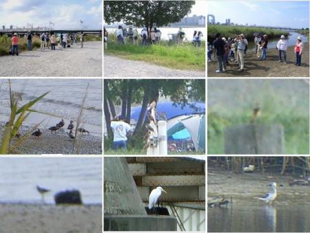 今日は、午前中は、淀川探鳥会に参加し、帰宅後は、テレビや録画ビデオを見て過ごした。探鳥会には十数名が参加、十三大橋から柴島干潟まで鳥を探して歩いた。残暑のきびしい日だったが、川を渡る風に吹かれながらいろいろな鳥を見ることができた。ただ、潮が引いた干潟にはしじみ採りなどで人がたくさん入り込み、鳥たちが隠れてしまって数は少なかったのが残念だった。自然に親しむため干潟に子供たちを連れてくるのはよいが、指導者は、鳥を驚かせるような大声を上げないよう、葭原に近づかないように、鳥たちへの配慮もして欲しいと思った。今日見た鳥は下記24種であった。カワウ、ダイサギ、コサギ、アオサギ、マガモ、カルガモ、ホシハジロ、バン、オオバン、コチドリ、シロチドリ、イソシギ、アオアシシギ、キジバト、ヒバリ、ハクセキレイ、ヒヨドリ、ノビタキ、セッカ、カワラヒワ、ムクドリ、スズメ、ハシボソガラス、ハシブトガラス珍しかったのは、アオアシシギ、ノビタキそれに、色の薄い(漠変)スズメ。7月の探鳥会で見た白いスズメとは別だ思われるとのこと。全体に色が薄く黄色い感じだが、他のスズメと同じ群で行動をともにしていた。(白いスズメは仲間はずれされていたのと対照的)写真は、上:探鳥風景、中・下:カルガモとホシハジロ、漠変したスズメ、ノビタキ、イソシギ、アオアシシギ、イソシギ鳥探す 淀の川原や 芒揺る帰宅後は録画しておいたNHK俳句、日曜日術館(伝統工芸展)を見たり、自民党の総裁公選の実況を見たりした。麻生氏は善戦したと思う。プロ野球、阪神はまさかの4連敗。中日は広島に破れたが、巨人が横浜に連夜の逆転勝を収めたので、阪神の優勝確率は7%に落ちた。勝敗表は載せたくないが・・・