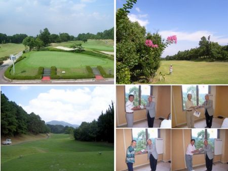 今日は、年に4回のプライベートコンぺの日。朝7時半に家を出て、9時にクラブに着き、帰宅したのは、夜7時だった。例年になく厳しい残暑となった今年の夏、9月に入って朝夕は少し涼しくなったものの、まだ日中は暑い。幸い今日は、風があって木陰に入ると涼しく、空もときどき雲が出て、カンカン照りではないので助かった。午後10分ほど夕立があったのも、いい湿りとなった。スコアは予想通り散々であったが、初秋の自然の中、いい気持でプレーできた。私は足を引っ張ったが、16名の参加者中、私の組から優勝と準優勝者が出、他の1人も5位だった。コース中は、百日紅やムクゲなどの花、モチなどの木の実が目を楽しませてくれた。お写真は、パッティング練習グリーン、アウト1番ホール、イン1番ホール、会長から賞を受ける入賞者ら。よき当り OBとなる 厄日かな