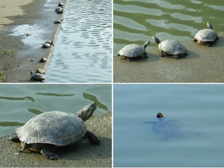 今日は、午前中は、ビデオで映画「ヘアー」を見て、午後は、大川端を散歩した。「ヘアー」は1979年のアメリカ映画。ベトナム反戦を主題としたミュージカルコメディだが、主人公の一人の戦死で終る。大川わんど池の岸にはたくさんの亀が甲羅干しをしていた。写真を撮るために近寄ると池に逃げたのでぎっしりのところは撮れなかった。 甲羅干す 亀が縁取る 夏の池10日から連続計算していた14星陣の解の総数が算出された。全部で15,278,390個。計算時間は90時間。
