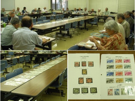 今日は、午前中は北野病院へ診察に行った。(科名は秘す)2週間前に診てもらった時より回復に向っているようで安心した。次回は7月3日に受診の予定。午後は、関西郵趣サロンの会合に参加した。関西郵友会との合同例会で38名の参加者だった。今日は2か月に一回の1リーフ展の日で15点の参加があった。私は、PAPEXの記念シールを出展したが、人気投票では選外だった。今日最高点を得たのは、「菊切手への満月印集」、2位は「立山航空切手と大仏航空切手」、3位は「沖縄B円切手」だった。リーフ展のあとは恒例の盆回しだったが、今日は、特に欲しい品物は見られなかった。写真は、サロンの様子、1リーフ展の様子、第1位と2位のリーフ。