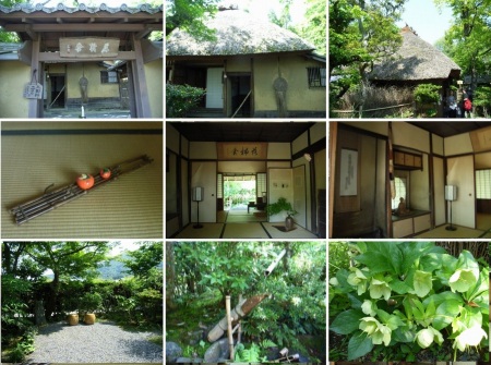今日はお天気がよかったので、京都・嵐山へ行き嵯峨野を散策した。どこへ行っても新緑がきれいだった。竹林を抜け、源氏物語で六条御息所がこもった野々宮神社を見て、落柿舎に入った。落柿舎へは昔入ったことがあるが、俳句をするようになってからは初めてなので、句碑を見たり、去来が過ごした部屋や多くの俳人が訪れた句会の場所などを見て感動した。本庵は、茅葺の小さな家で、13畳半(5.75坪)の大きさで、2畳間3つ、3畳間と4畳半が1つずつに仕切られている。敷地内にはもう一つ5坪くらいの次庵がある。敷地内には多くの柿の木が植えられていて、緑がまぶしいくらいだ。柿の木はちょうど花が咲き無駄花がたくさん落ちていた。門、本庵、本庵、玄関、3畳の間、4畳半、庭、鹿威し、寒芍薬の花ここへは芭蕉をはじめ多くの俳人が訪れ、句会が催されたそうだ。たくさん句碑が建っていて見つけたものだけを次に示す。落柿舎の石碑、制札、去来句碑、芭蕉句碑、虚子句碑、興句碑、與重郎句碑、蘭子句碑、栢年句碑落柿舎の 七つの句碑や 若葉風句碑の句は、次の通り。 柿主や梢はちかきあらし山 去来 五月雨や色紙へぎたる壁の跡 芭蕉 凡そ天下に去来ほとの小さき墓に詣りけり 虚子 春の雨天地ここに俳人塔 平沢興 何もない庭のひざしや冬来る 保田與重郎 十三畳半の落柿舎冬仕度 芝蘭子 足もともはづかし庵のわかれ霜 栢年制札には次のように書かれている。 一、我家の俳諧に遊ぶべし 世の理窟を謂ふべからず 一、雑魚寝には心得あるべし 大鼾をかくべからず 一、朝夕かたく精進を思ふべし 魚魚を忌むにあらず 一、速に灰吹きを棄つべし 煙草を嫌ふにはあらず 一、隣の据膳をまつべし 火の用心にはあらず 右條々 俳諧奉行 向井去来
