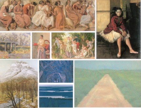 今日は、神戸大丸で開催されている「小磯良平・東山魁夷展」を見に行った。小磯良平・東山魁夷とも兵庫高校の出身で当校の創立100周年を記念して開催されたもの。小磯は洋画、東山は日本画の画家として、神戸が生んだ巨匠として有名である。ただ私は、戦前の神戸画壇に大きな貢献をした孤高の洋画家「鈴木清一」のことを知ってからは、8年も後輩の小磯のことは余り好きになれなくなった。今回は東山の日本画を見たくて会場を訪れたのだった。会場は平日にも拘わらず多くの観客が来ていた。小磯・東山各30点計60点が展示されていたが、有名な作品は少なかったように思う。東山魁夷の絵の中では、大作の満ち来る潮(1970)と、山峡朝霧(1983)が見応えがあった。また、有名な「道」の絵に似た絵もあったがこちらは題名が「静日」であった。ほかに「道ー習作」という絵も展示されていた。画像は、パンフレットより。群像(1956)、戦災後の生田の森(1945~47)、婦人(1978)、森(1965~74)、踊子(1938) 以上小磯良平、焼岳初冬(1931)、森の幻影(1971)、スオミ(1963)、静日(1950) 以上東山魁夷。六甲の 迫る青嶺や 魁夷の絵満ち来る潮(1970)、山峡朝霧(1983) 以上東山魁夷