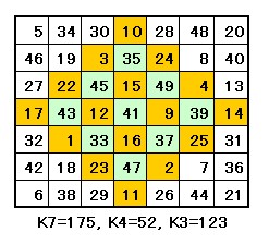 今日も、ほぼ一日中在宅で、昨日パズル仲間から送られて来た新しい問パズルの検討を行った。夕方になってやっと解けたので解を送付した。その問題は、7方陣の中に4方陣と3方陣が含まれる包括方陣で、中央の数を41に固定して解いて欲しいというもの。中央の数が10から40までは作ることができたが、41の場合だけがなかなか出来ないのだそうだ。プログラムを作って調べたが、なるほどなかなか解が出ない。しかし、解のありそうなところを探しては走らせていると遂に解が出た。一旦出るとその近辺に解が集まっているらしく1000個ほどの解を得た。下に、最初に得た解を示す。今日も、外出しなかったので、以前撮ったキジバトの写真をUPする。ふつう町や公園などで見られるのはドバトという鳩だが、キジバトは野鳥。ドバトに混じっていることもあるが、単独でいることが多い。羽の模様がきれいである。キジバトの目は うつろなり 草若葉