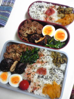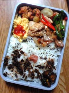 早起きしてお弁当作り。5日間のうち、一日おきに3日間作製予定。テルの大学は、今月末が学園祭の本番。相変わらず実行委員の(3年生・・いや実際は2年生だけどw・・なので要職らしい)彼は今週殆ど帰宅せず、学校近くの後輩宅に泊まりこみで準備に追われる模様。ダーリンの仕事内容を鑑みるに、やはり血は争えないというか。ダイは粛々と日々をこなしている。彼は部活にも入っていないので、帰りもまずまず早い。(一応、体育祭とか文化祭の時は、それなりに委員会活動をした様子)夜は10時過ぎには部屋の電気が消え、朝は6時前に起きて自分でご飯を温めている・・。なんて手のかからない高校生なんだ!ごめんよ!放置の母ちゃんで!!台風が来てるんですね。夕方から雨脚が強まるとか・・。ダーリンは、知り合いのお通夜に出かける予定。そして私は今夜も当直です。よって、ウチメシは各自。ヅラ母はテンション高めで経過中。下ごしらえした野菜とか保存食を昨日渡したので、なんとか独りでやるでしょう。【今朝のお弁当】☆2段海苔弁(梅干・おかかしっとりふりかけ・鮭そぼろ)☆ゆで卵(と、プチトマト)☆青梗菜としめじ・人参のソテー☆ささみの磯辺揚げ☆烏賊の天ぷら・たれ絡め(冷食)