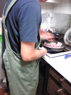 【今朝のこはるさん】出勤前にこんな姿を見たら、もうまったく仕事モードから遠ざかります。足元を温める天然湯たんぽ。・・でも、確実に私自身が毛だらけに。********************************なかなかPCが開けない日々。このご時勢、目が廻るほど忙しい仕事があるというのは幸せなんでしょうが。月の前半が『日勤祭』だったぶん、後半は残10日の間に当直が3回も残っています。うへぇ・・またお肌が荒れるわぁ。もうすっかり晩御飯の実権は、ダーリンのものです。ありがたいが、申し訳なさもあり。今週、私が作ったのは・・数日前のビーフシチュー(←またかよw)のみ。基本煮込みモノはダーリンがしないので、自然とそんなメニューが廻ってくるんですね。夕べは、海鮮嫌いのテルが不在だったので・・海老チリ。付け合せのレタスは、ダイナミックな大ボウルにワサワサ。【ボウルごと抱えて食べるダイ】明日からお弁当が再開するので、ようやく母ちゃんの出番です。まぁ、途中時々休むけどね。