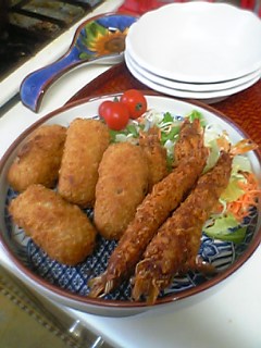 たいめいけんのコロッケ(0食)と、有頭えびフライ(0食)