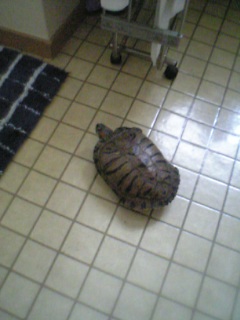 今日の脱走犯は、ダイが小学校低学年ぐらいの頃に、夜店でゲットしたミドリ亀。