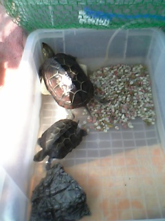 自分の亀の水槽を、派手な音を立てて掃除。(あぁ、姑息な・・)