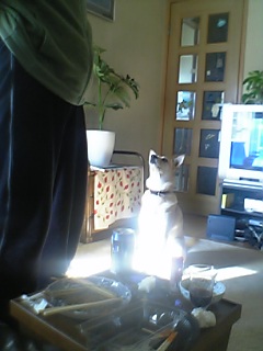 【日を浴びてダーリンを見上げるこはる】