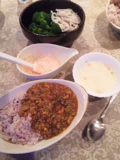 (合挽き肉・玉ねぎ・人参・ピーマン・エリンギ・茄子・プチトマト・ウインナー残り)