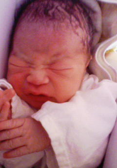 結局寝てばかり居ないで少し歩きましょうと言われて、歩き始める手前で思ったよりお産が進みそうだって事になって、お昼をあまり食べられなかったから(だって炒飯に揚げ春巻だなんて、こんな時に食えるわけ無いじゃん(><))、近くのスーパーでゼリーでも買ってきた方良いかもと看護師さんからアドバイスを貰って出かけた母親が、間に合わないくらい、超スピードで出てきちゃった。
