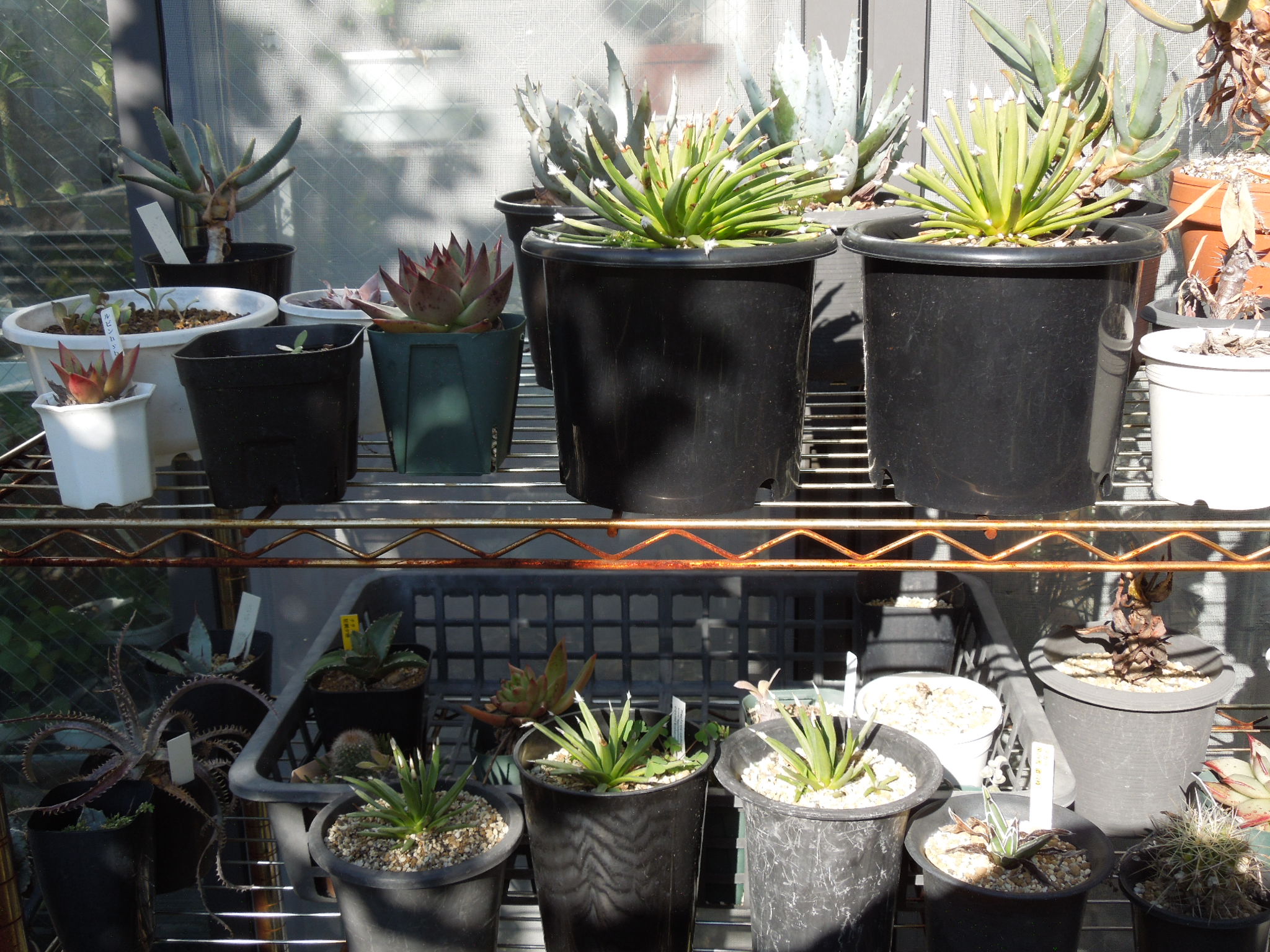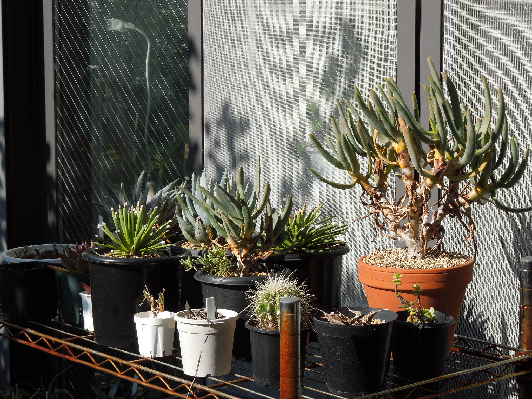 盆栽仕立てに出来そうな樹形が気に入って購入したアロエ・ラモシシマ。3.5号鉢サイズの苗はいくつかダメになったが、それより大きいサイズは脱落者は無しで育っている。強健種???まだ、屋外軒下で管理中。一番大きい、6号鉢に植えたラモシシマ。幹が良い感じになってきた。3.5号鉢の生き残り。断水気味にしておけば耐寒性も有りそうなので、もうしばらくは軒下で様子見。