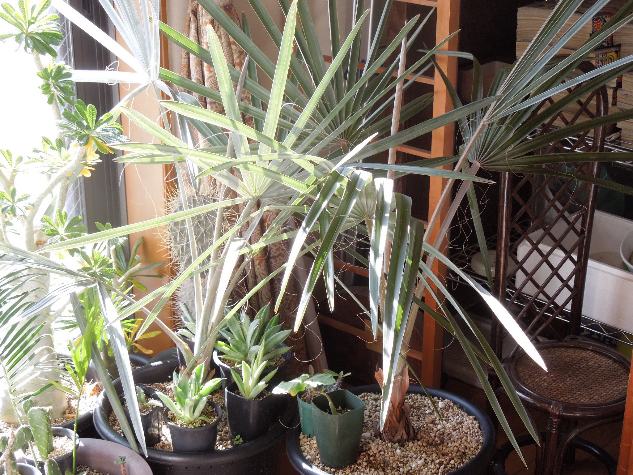 ビスマルキア・ノビリス・シルバー、実生したり小苗を購入したり・・・生長は遅く、新葉は1年に3~4枚出るくらいだが・・・小葉の数が多くなって葉も大きくなってきたので・・・現在、屋内に取り込んだのは2鉢だけ。どちらも2021年に葉が2~3枚の小苗を購入。小葉の数は、一番多いものでも・・・まだ13枚。幹が少し太ってきた。屋外に残っているビスマルキア昨年実生して屋外越冬した苗。~5株屋外越冬させてみたが、地植えの1株と鉢植えの1株がダメになった。耐寒温度、-3℃とかー5℃とか書かれているが小さい内は屋内に取り込んだ方が良さそうだ。 ということで・・・大きくなったビスマルキアは、今年は屋外越冬。小苗で購入したビスマルキア2021年に実生したビスマルキア幹はこんな感じ。もう1鉢ゆっくりだが新しい穂先も伸びている???