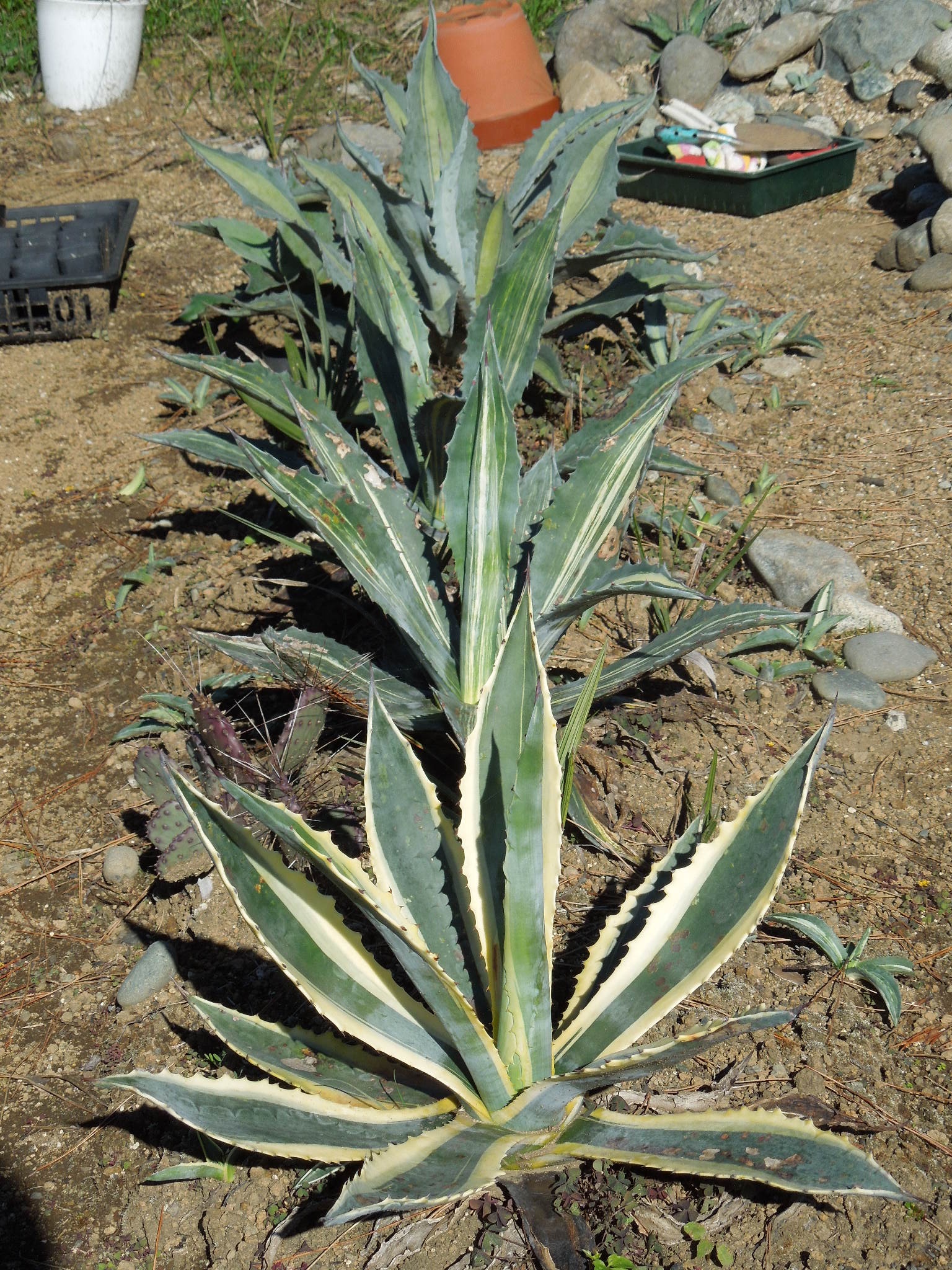 刺が気に入ってフェロックスをいくつか購入したが、斑の入っていないタイプは生長が速くてびっくり!クレイジーホース(左)と覆輪斑クレイジーホースは覆輪斑の半分くらいの大きさだったが・・・子株も多い。クラッシスピナ奥はクレイジーホース。ローガンカルホーンフェロックス”ブルー”フェロックス錦地植えにしたフェロックスでは、これが一番生長が遅く痛みやすい感じ。過湿にも弱いのか、梅雨の多雨、夏季の高温多湿期に下葉がだいぶ傷んだ。自宅では鉢植えで、ほとんど問題無く越冬したが地植えはどうだろうか・・・