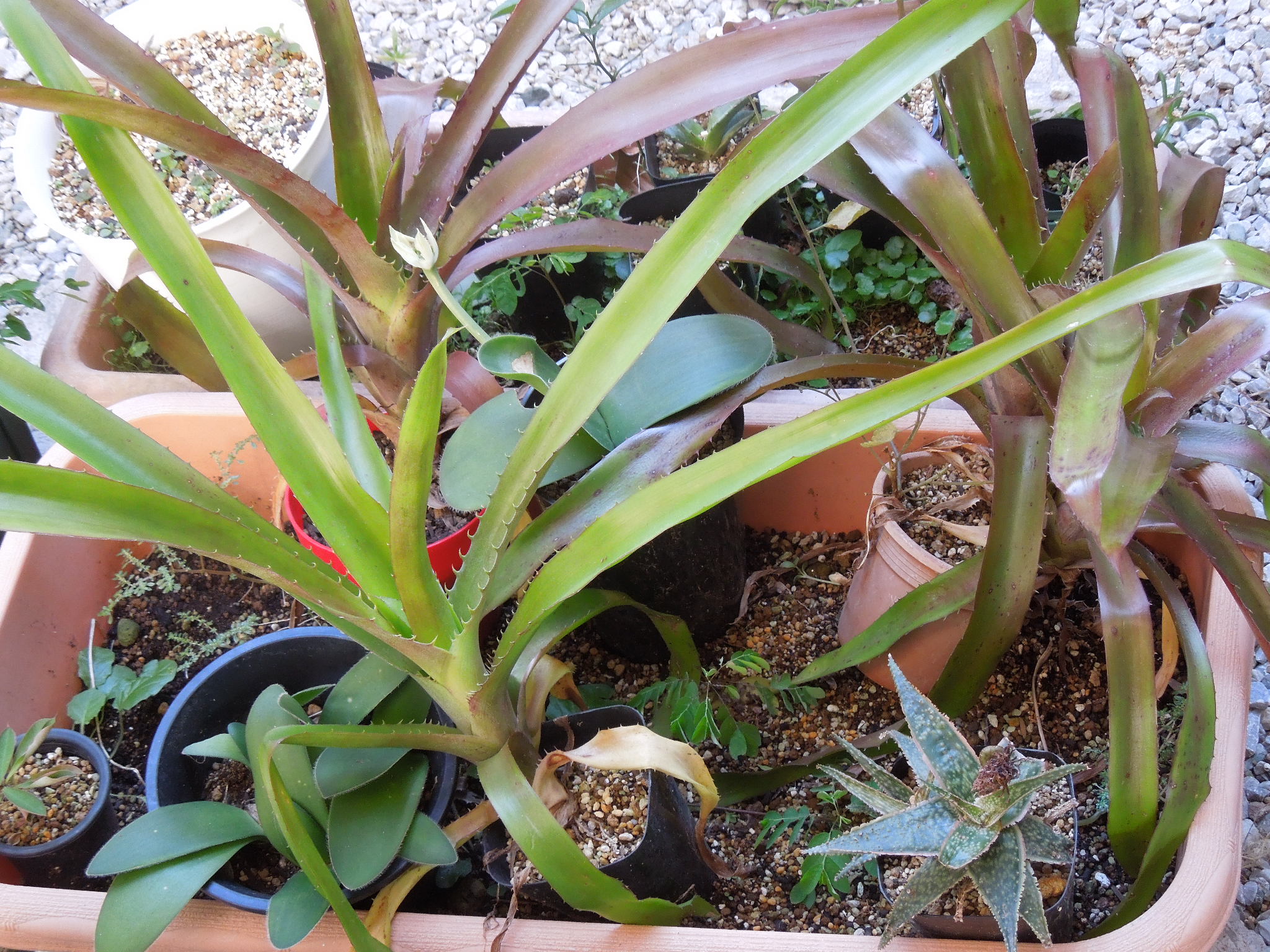 一昨年の11月に購入。屋外軒下とか屋内窓際とかで越冬。昨夏は屋外軒下とか庭木の下でで管理。今年はほとんど放置状態。樹形がだいぶ乱れてしまった。鉢を回さなかったからか、酷い形・・・左の鉢も庭木の下で酷い形になっていた。気が付いて日当たりの良い場所に移動したが・・・治らず。一番日当たりの良い場所に置いてあったペグレラエ。これが一番まともか???植物によって適当な置き場所が全然違う。
