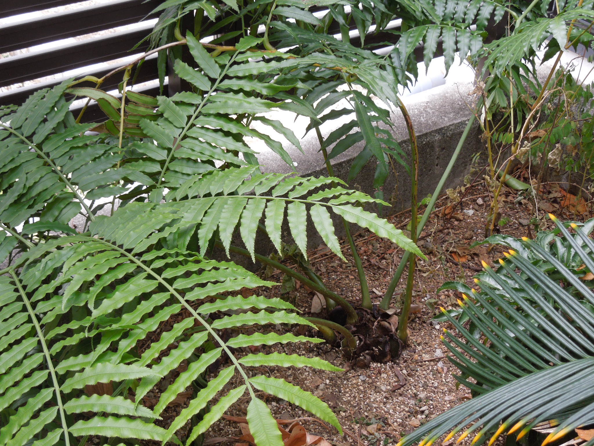 2020年に2株を地植え・・・その後、もう1株。現在まで順調に生長中。まだ寒いが、どちらも動き始めた???オオタニワタリ(鉢植え・越冬2回目)も、頑張っている。こちらは、動きは無し。ほとんど日の当たらない場所だからか???
