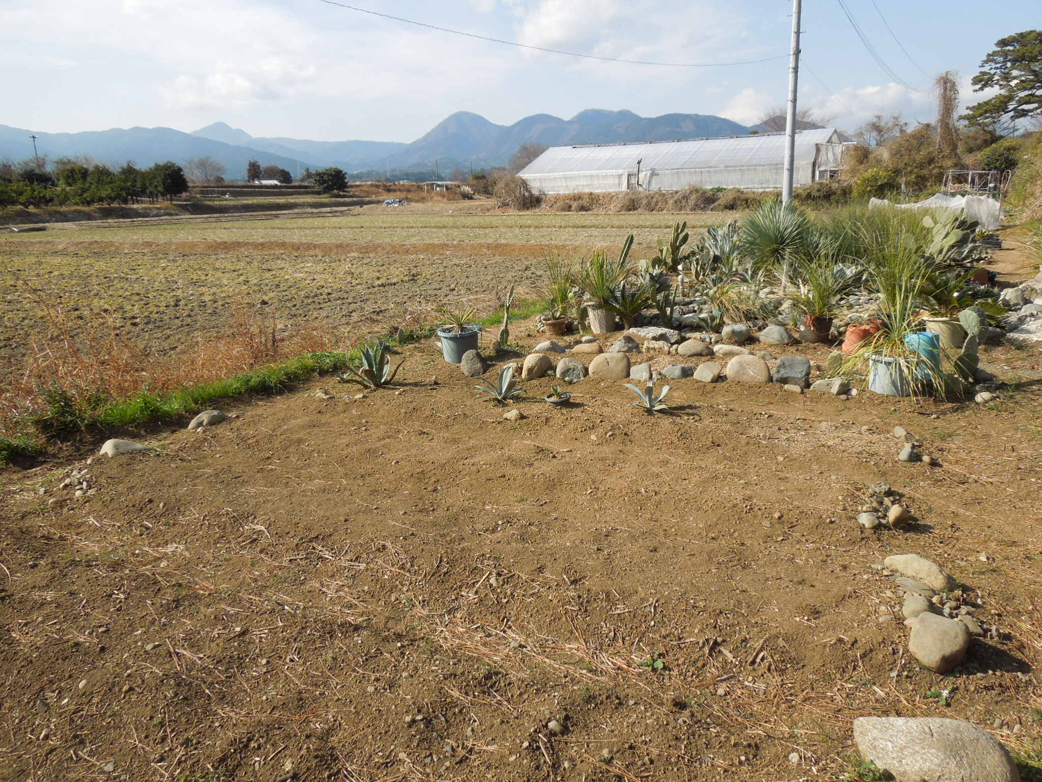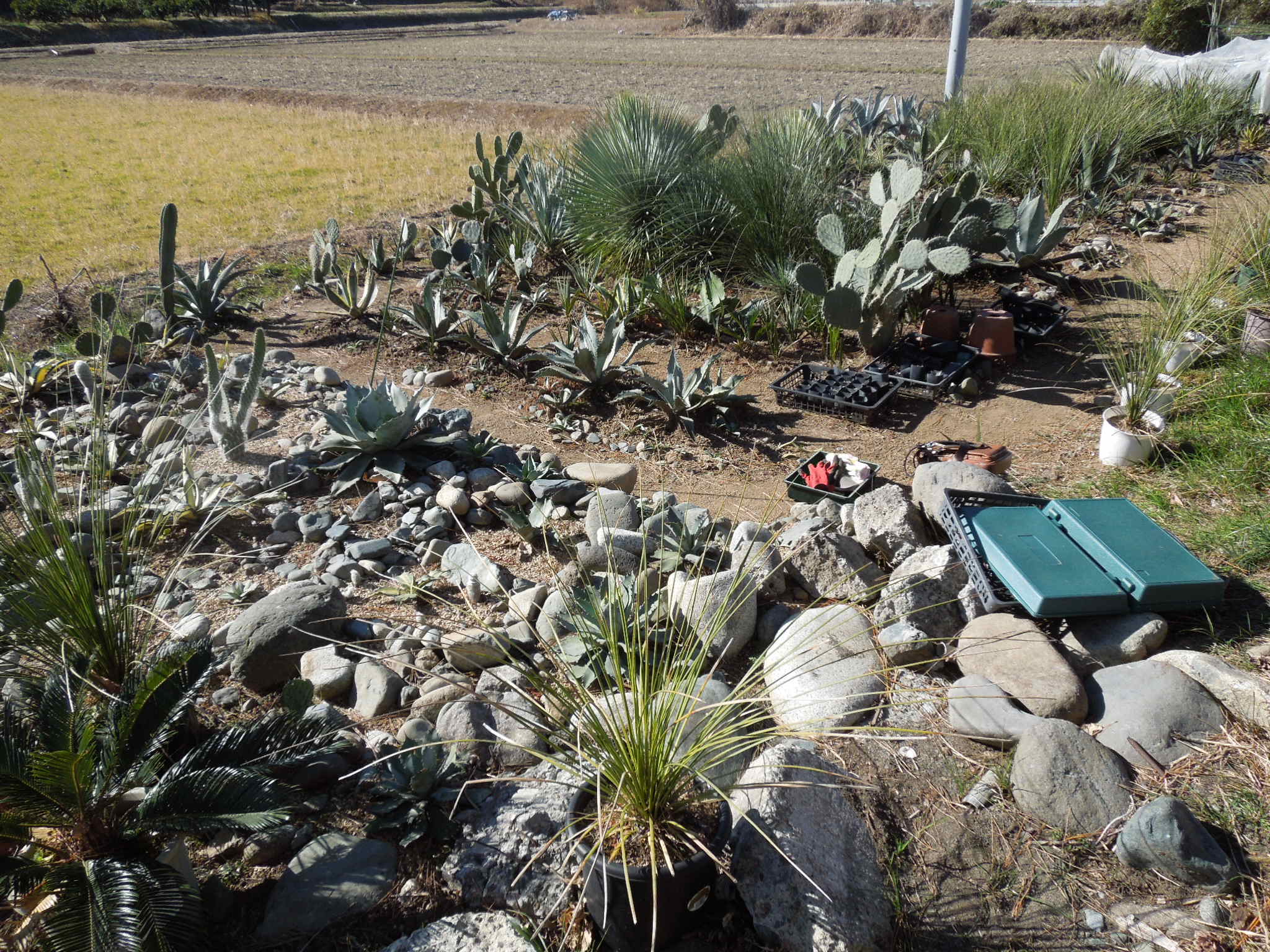 本格的な降雨は40日振りだとか・・・気温が高かったようで、山に雪は無し。畑もちょうど良いくらいの湿り具合。少ないが、冬でも雑草は生えてくる。久しぶりの草取りで・・・直ぐに挫けて、手前の部分だけ取って終了。春の植え付けに備えて・・・日向土と赤玉土を混ぜ込んでみた。こんな感じ。畑の植物の様子オバティフォリア、ストリクタ、ダシリリオン・クアドラングラツムフランゾシニークレイジーホースクラッシスピナフランゾシニーライムエッジオプンチア・初日の出鉢植えはダメになってしまったが・・・風で倒されて地面に放置状態の初日の出は生きているみたい。