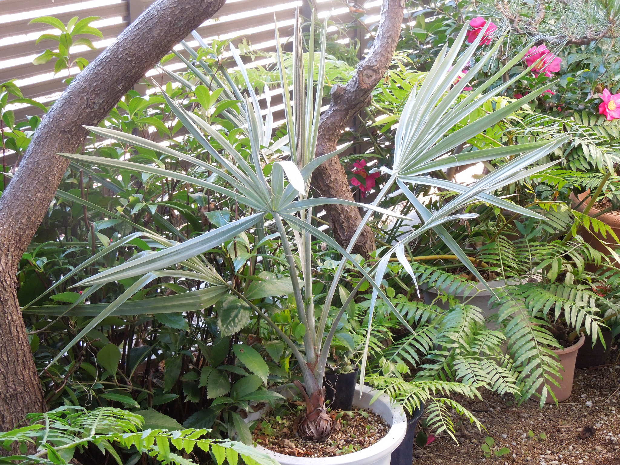 2022年にヤシ類を実生したら、大量に発芽・・・植え付け場所が無くなり・・・苦し紛れに、庭木の下などの隙間に植え付けた発芽種子。半分以上はダメになったが、いくつか生き残っている。ブラヘア・アルマータキンモクセイの根元に植えた2本は脱落者無し。南側庭先。数は、半分以下になったが・・・キンモクセイの根元に植えた苗より育っている感じ。こちらの方が日照時間が長く、北風にも当たらないからか???チャメロップス・フミリス・セリフェラこれも、半分以下になったがいくつか生き残っている。ブラヘア・アルマータより、葉が大きい???ブティア・オドラータか???私が実生したヤシ類は、日照時間が長い畑に植えた苗の方が良く育っている。 ブラヘア・アルマータ チャメロップス・フミリス・セリフェラヤシ類は、少しでも多く日照時間が確保できる場所で育てた方が良さそうだ。
