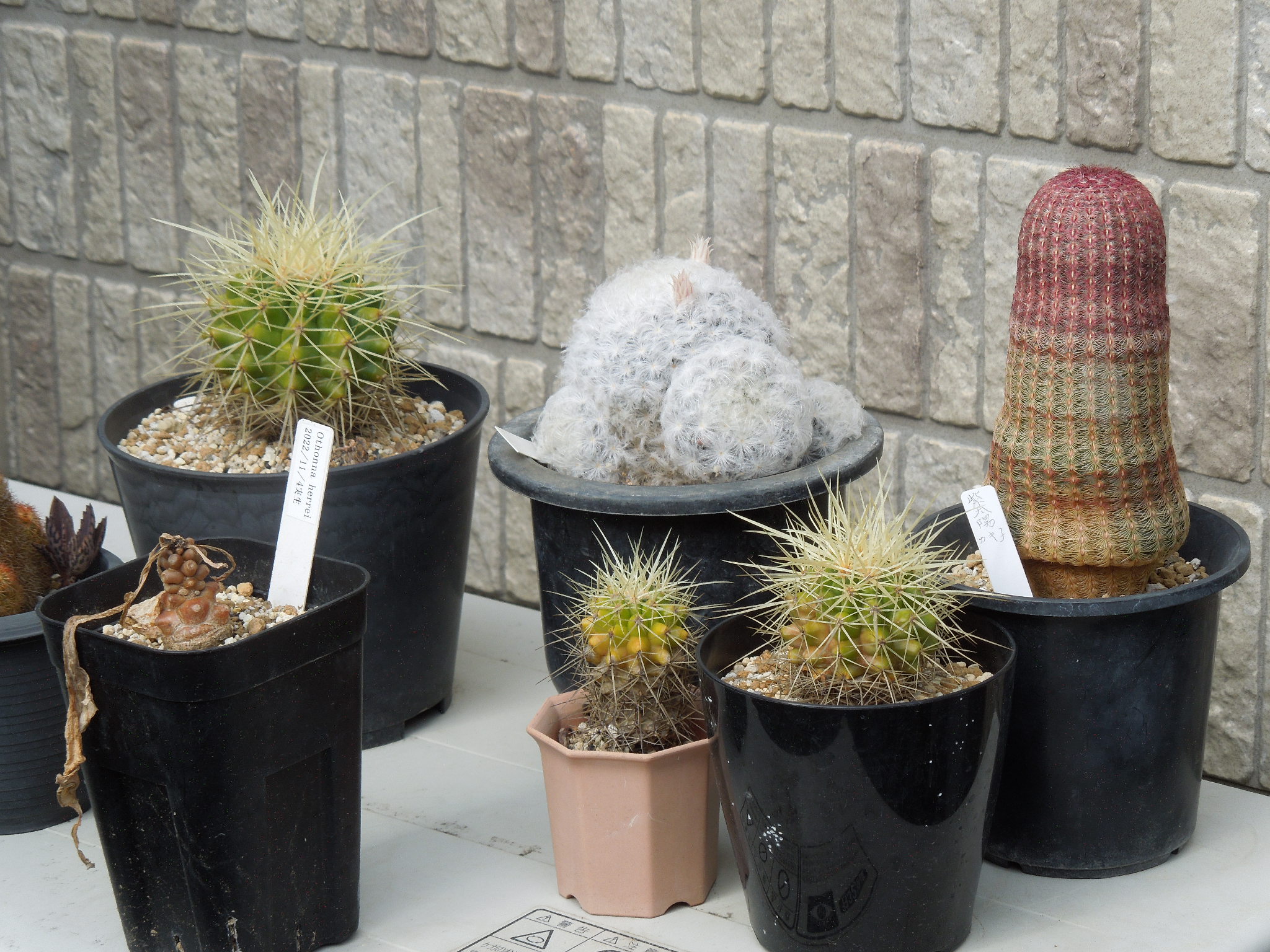 昨年10月のサボテンクラブ例会で持ち帰った白星・・・持ち帰って、しばらくしてからはエアコンの室外機の上に置きっ放し。花が咲き始めた。他の白星とエスポストア類、実生苗の様子。雨の当たりにくい軒下で・・・ソテツの葉に覆われて放置プレイ。生きている???暖かい日に・・・少し水を遣ってみようか・・・