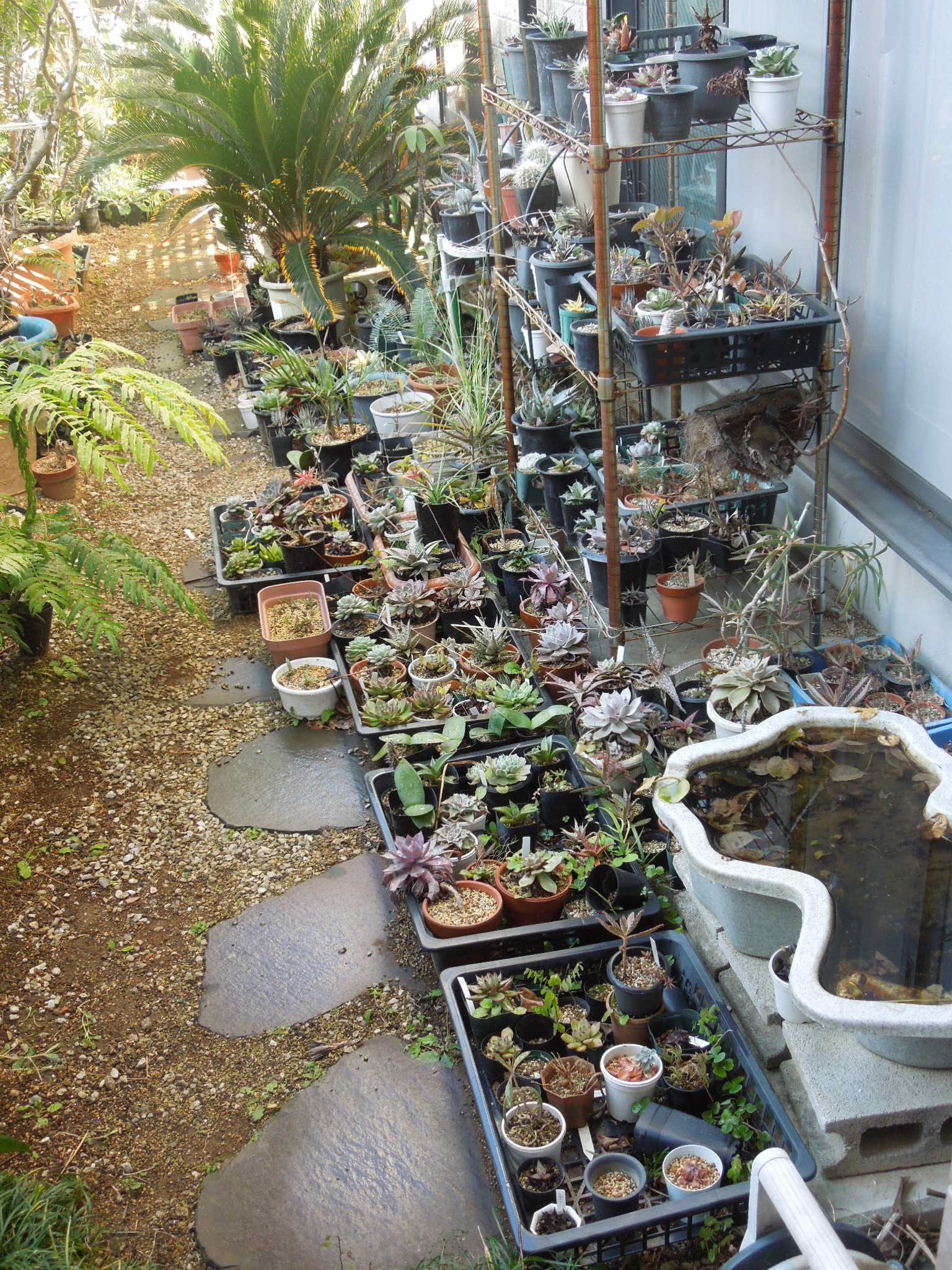 これからが寒さ本番。畑の植物の様子を確認。エケベリア・ルビンhyb幻楽とか銀河楽とか・・・サンタリタマクロケントラコノフィツム少し皺になっている。寒さ???水切れ???リトープス