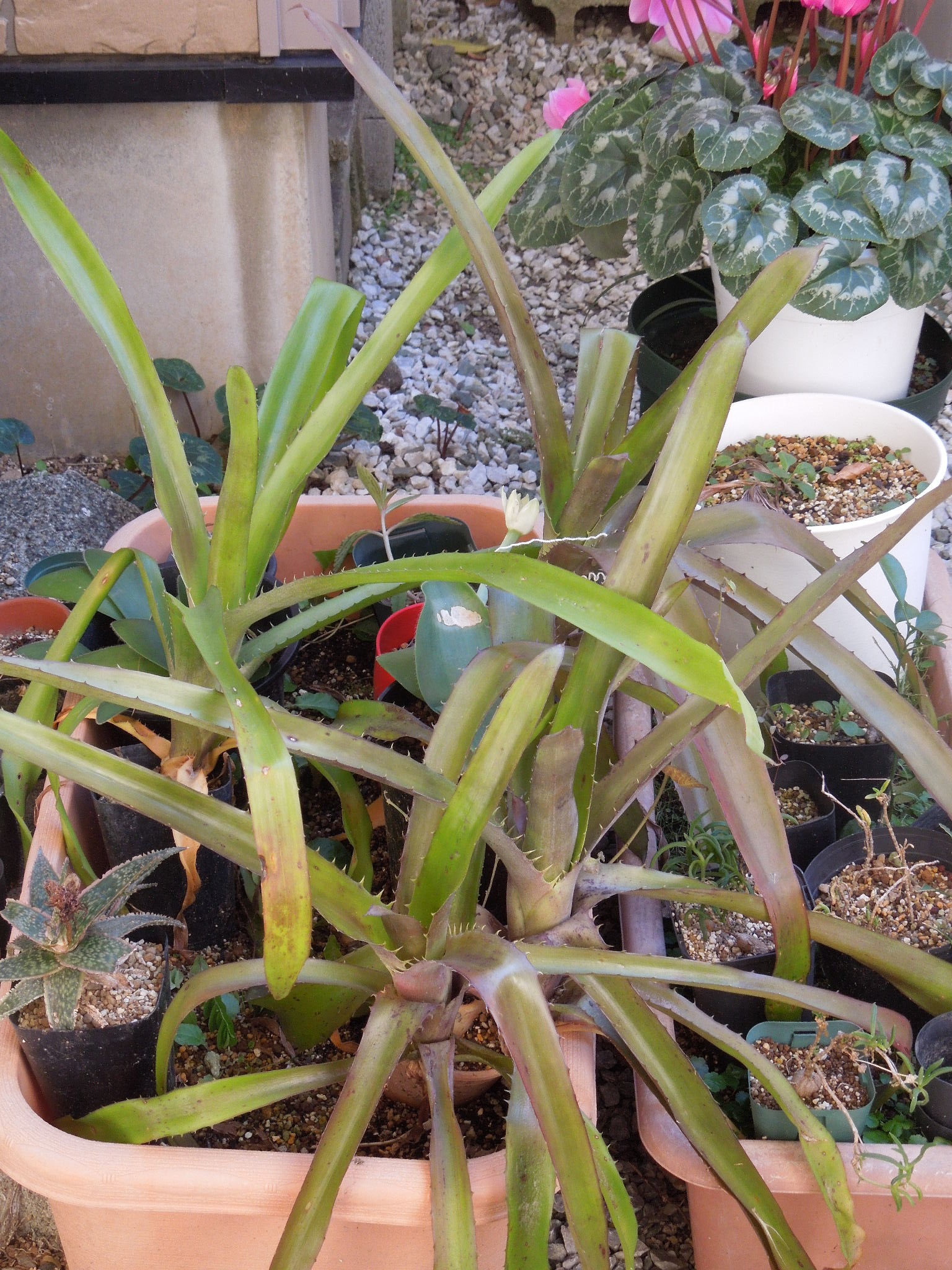 2022年12月に実生したホヘンベルギア。今冬は屋内に置き場所が確保できずに・・・いくつかは屋外越冬中。一番寒くて、ほとんど日が当たらない場所。葉が赤くなっているが、まだ大丈夫そう。ハエマンサス・アルビフロスとアロエ・ドニーも・・・3~4時間日が当たる場所。これも、問題無さそう。屋内屋外越冬できたらもお少し増やしてみようか・・・