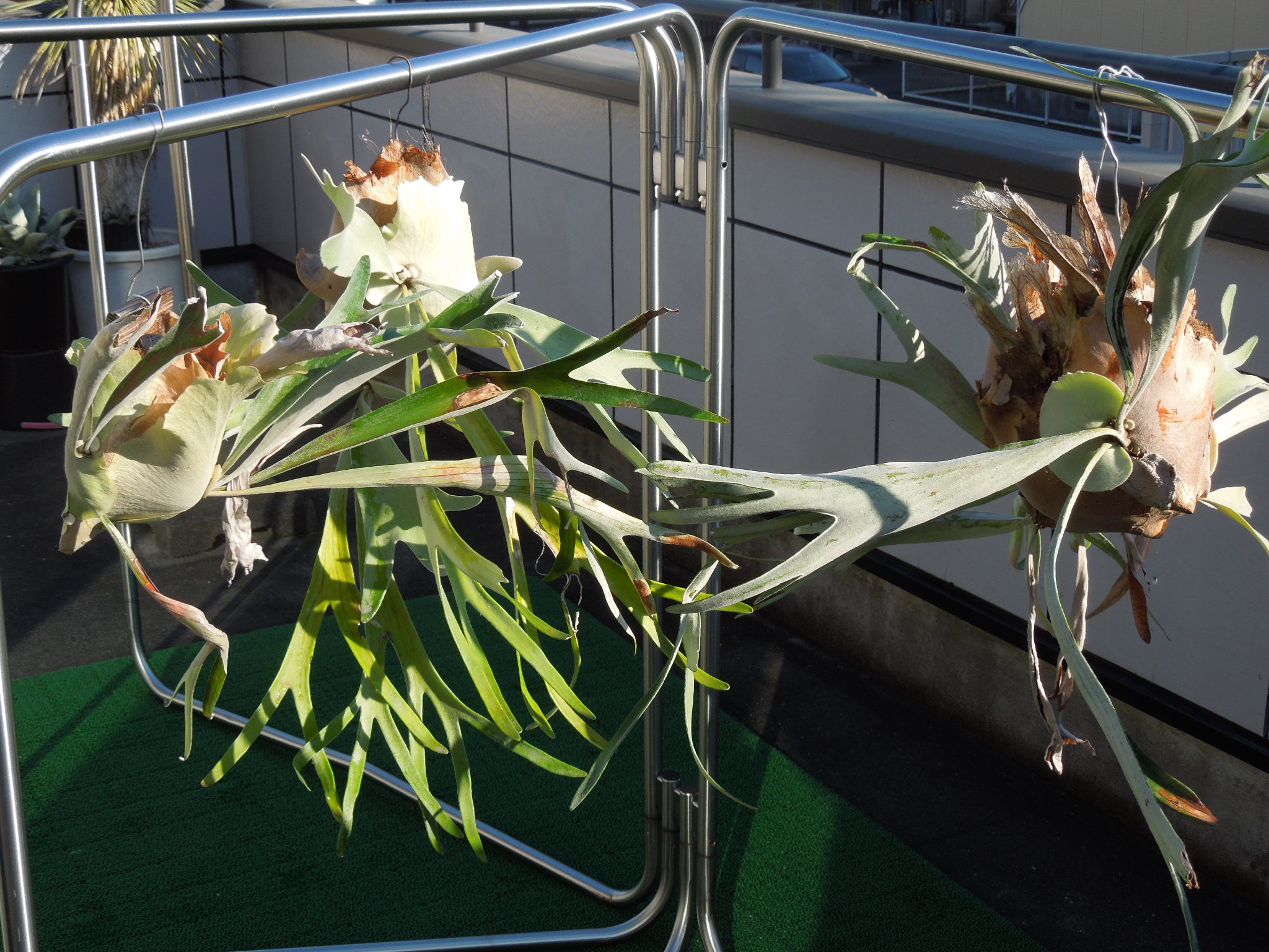2019年から育て始めたビカクシダ。胞子培養もしてみたので、大きさがいろいろ・・・とういことで、1株ずつミズゴケの湿り具合を確認して・・・乾いているようだったら、水遣り。今日は3株。ビーチー系は、冬季も屋内で普通に成長している。子株だらけになっているが・・・うまく株分け出来る気がしない。新しい貯水葉が展開中。