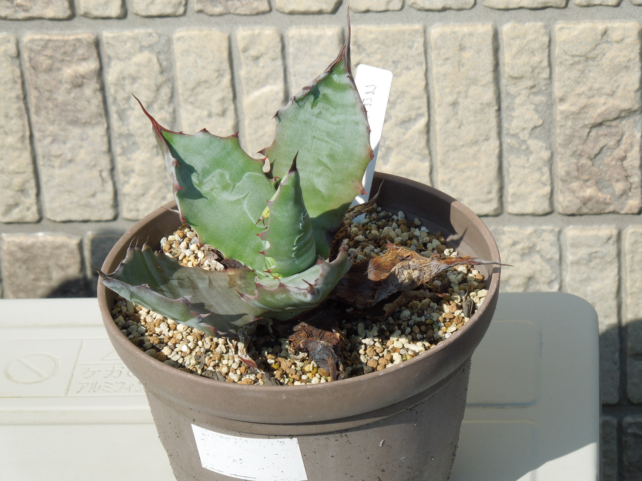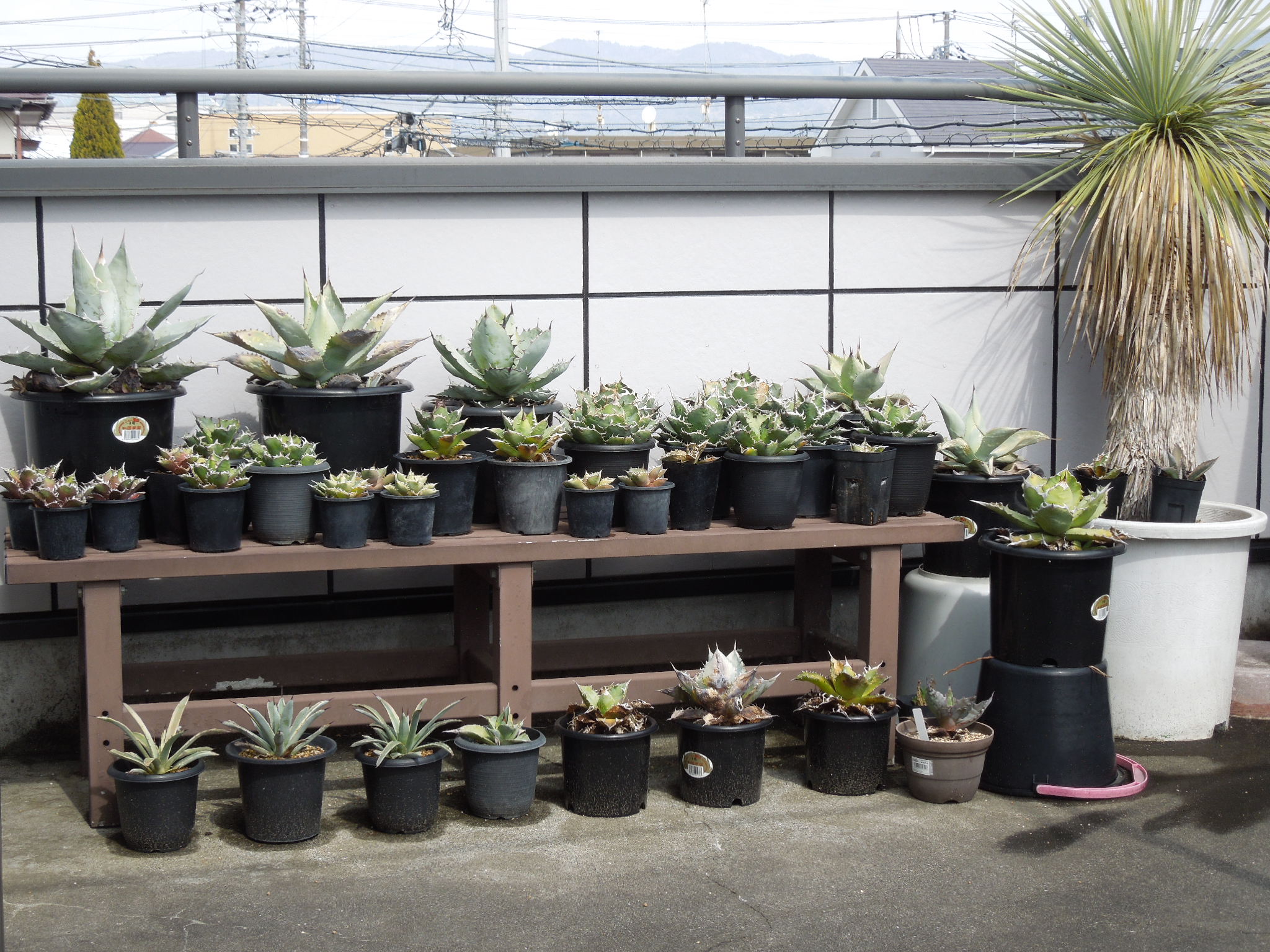 物干し場、雨ざらしで越冬したアガベの様子。暖かくなってきて、これ以上傷む事は無いか???ということで・・・チタノタ”ホワイトアイス”ブルーウェーブチタノタ”ブラック&ブルー”チタノタ”白鯨”、”海王”ドラゴントゥースチタノタ”レッドキャットウィーズル”チタノタ”巌流”チタノタ”バナナピール”、”ホワイトアイス”マクロアカンサ錦チタノタは、夕映えとかバナナピールとか、斑入りの小苗はだいぶ傷んだ。ホワイトアイスも小さい苗ほど痛み気味。白鯨は、少し大きくても弱いか???ブルーウェーブのほうがドラゴントゥースより寒さに弱い???畑に植えたブルーウェーブはダメになった。マクロアカンサ錦は問題無さそう。今冬、積雪はなかったが・・・2回の長期寒波で、例年より寒かったような気がす。来冬のことは、また考えよう。