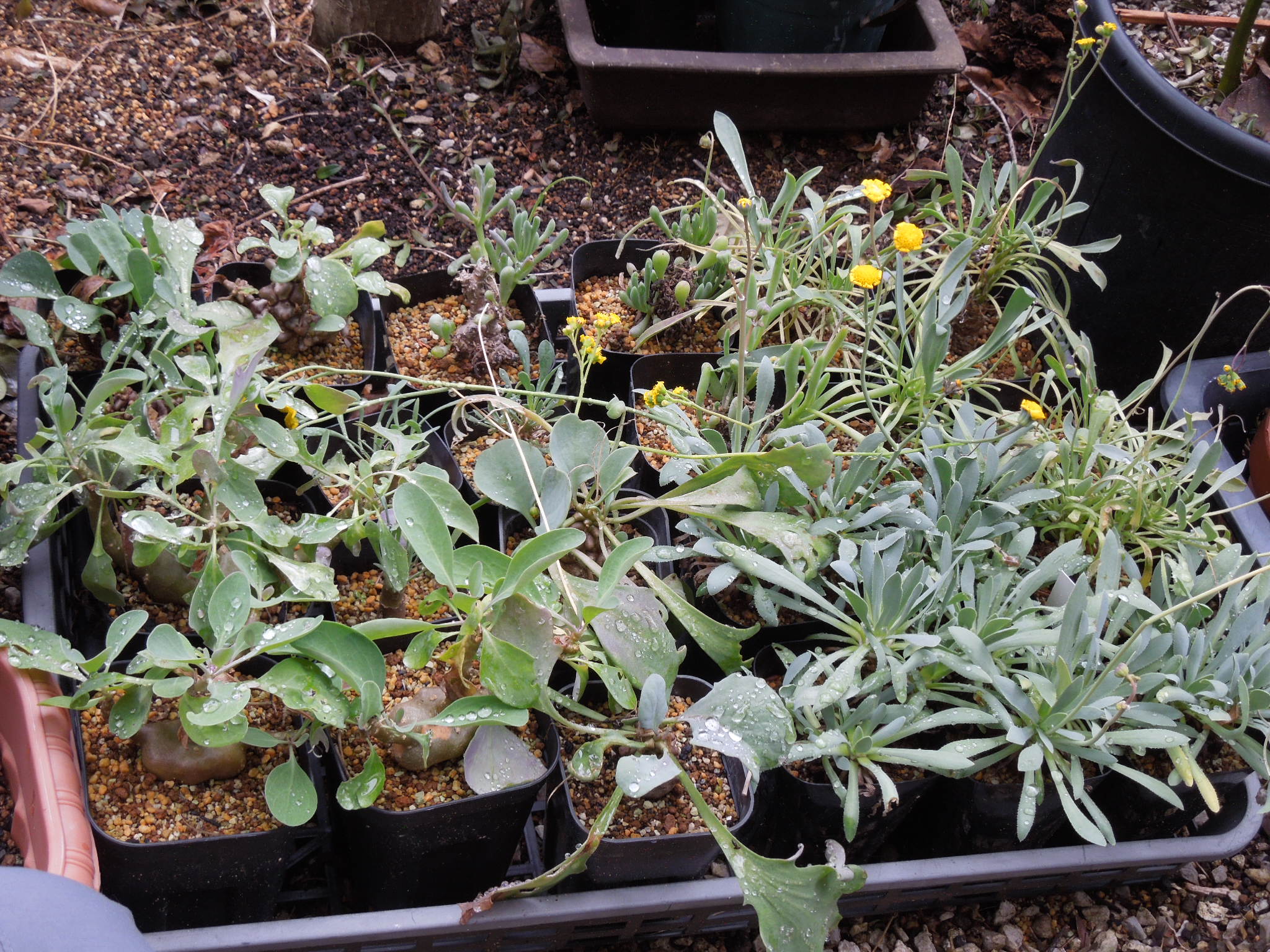 昨年植え付けたリトープスとコノフィツム。リトープスはだいぶ生き残っているが・・・水分が多すぎ???コノフィツムはだいぶ傷んだ。生きているのか???2回の長期寒波と3月の雨でこの状態なら・・・まあまあか???