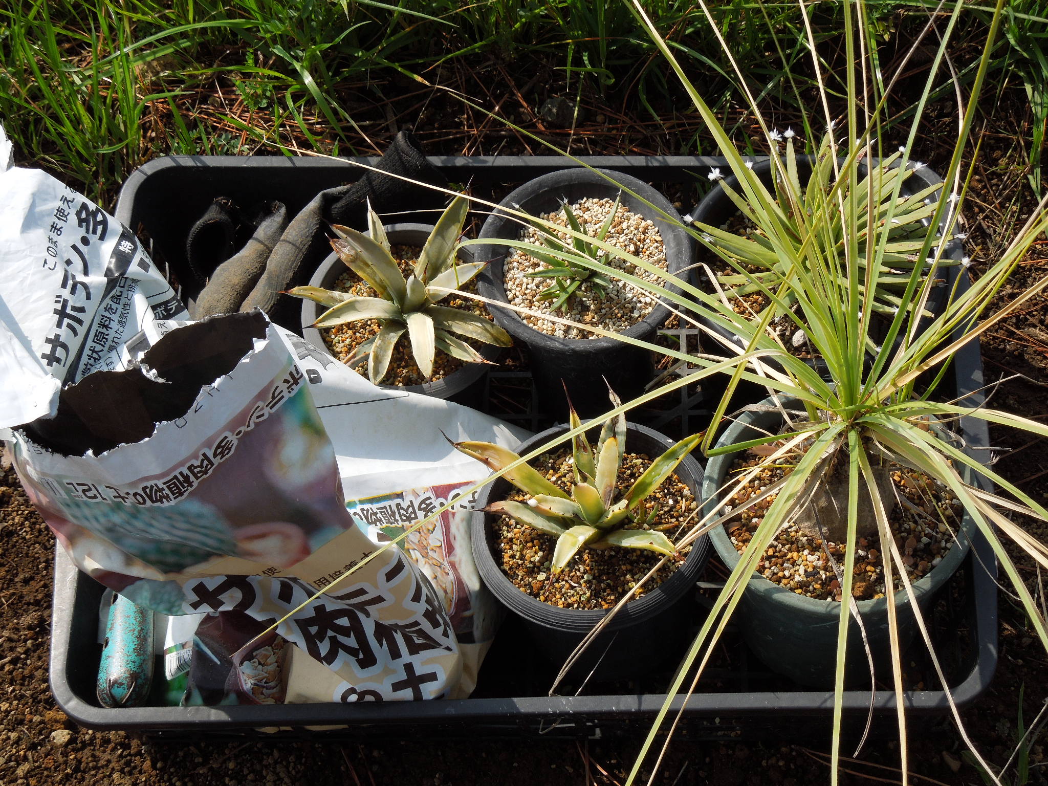 先日に続いて子株の植え付け。植え付ける前に、気休め程度だが・・・排水性確保のために、日向土と赤玉土を混ぜ込んだ。親株に頭を押さえつけられていたフェロックス”ブルー”の子株と・・・ハウス内で成長が止まっていたマクロアカンサ錦の小苗。マクロアカンサ錦の小苗は根鉢になっていた。それで、生長が止まっていたのか???フェロックス”ブルー”の子株は良い感じで根が出ていた。ある程度子株が生長すると、地下茎は腐って自然に切れるみたいだ。用土を混ぜ込んだ場所に植え付け。五色万代の子株こんな感じで5株植え付け。ついでにアメリカーナ”縞斑”の子株も・・・これだけで、用土が2袋空になってしまった😢