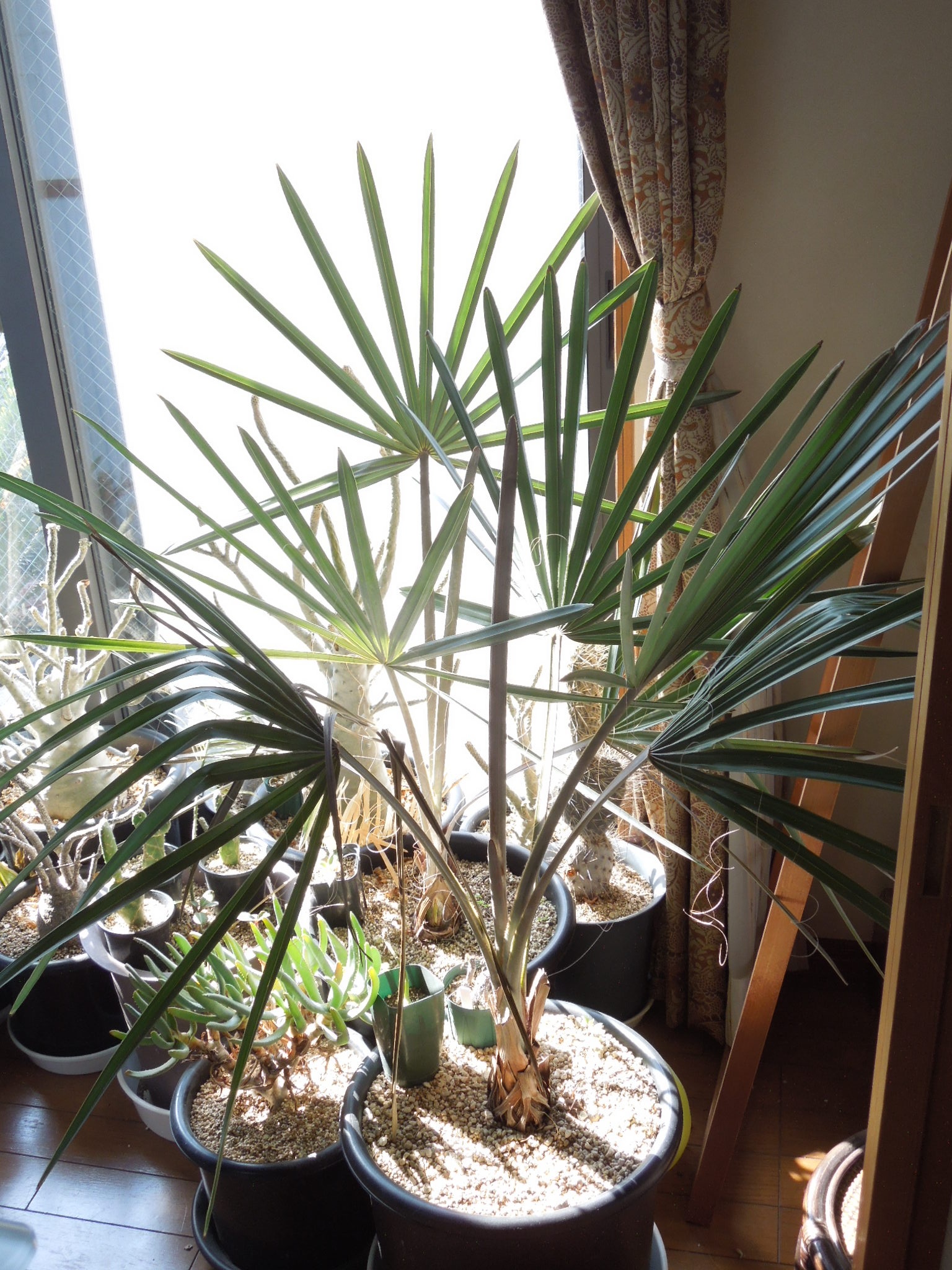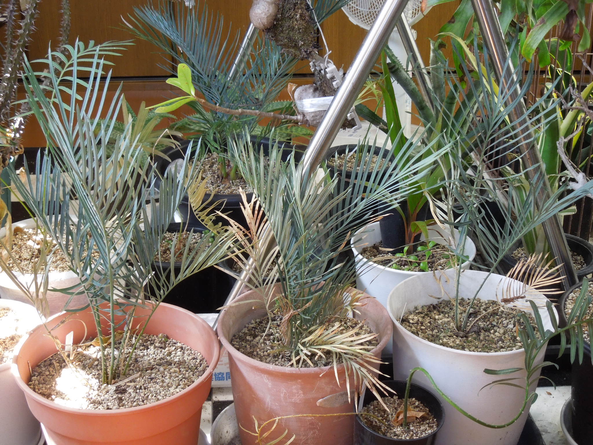 屋内で越冬したビスマルキアは順調に生長中。新しい穂先も伸びている。屋外越冬のビスマルキアは・・・ダメ???寒さで葉が枯れただけ???昨冬は、小苗が傷みながらも越冬したが・・・今冬は2回の長期寒波。昨冬より寒かったか???もっと暖かくなって新芽が出たら、ラッキー・・・みたいな感じで、様子見。ディオーン・エデュレ(奥の白い鉢)は、全く問題無し。