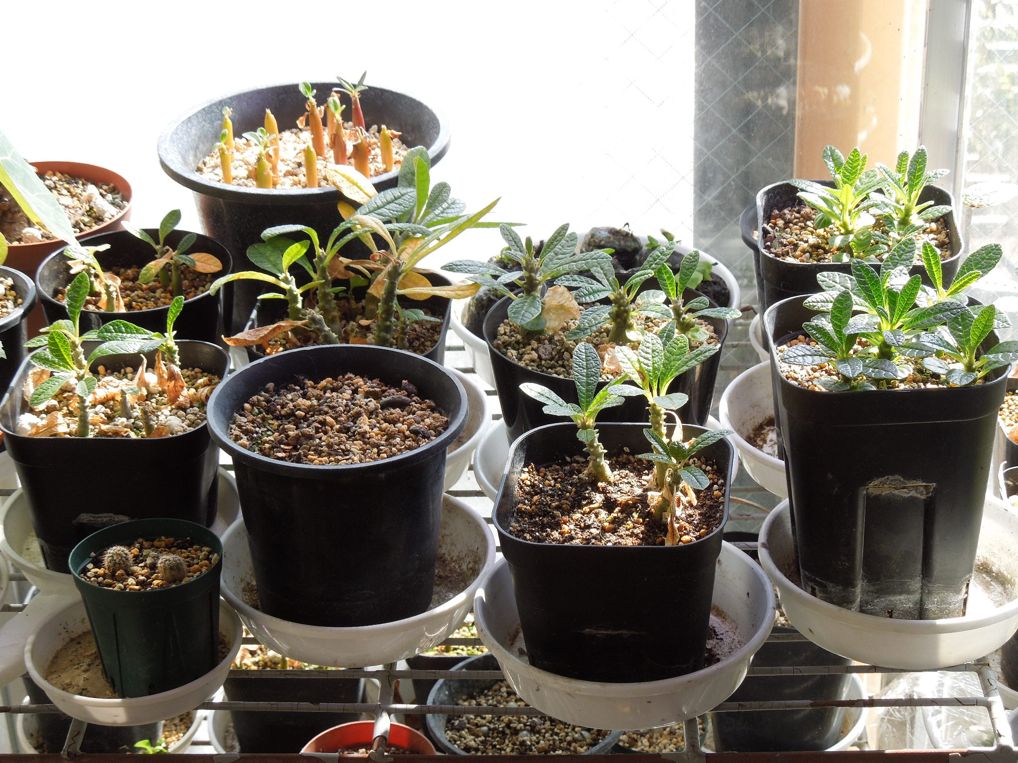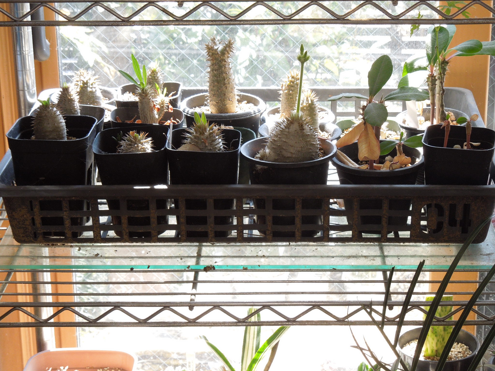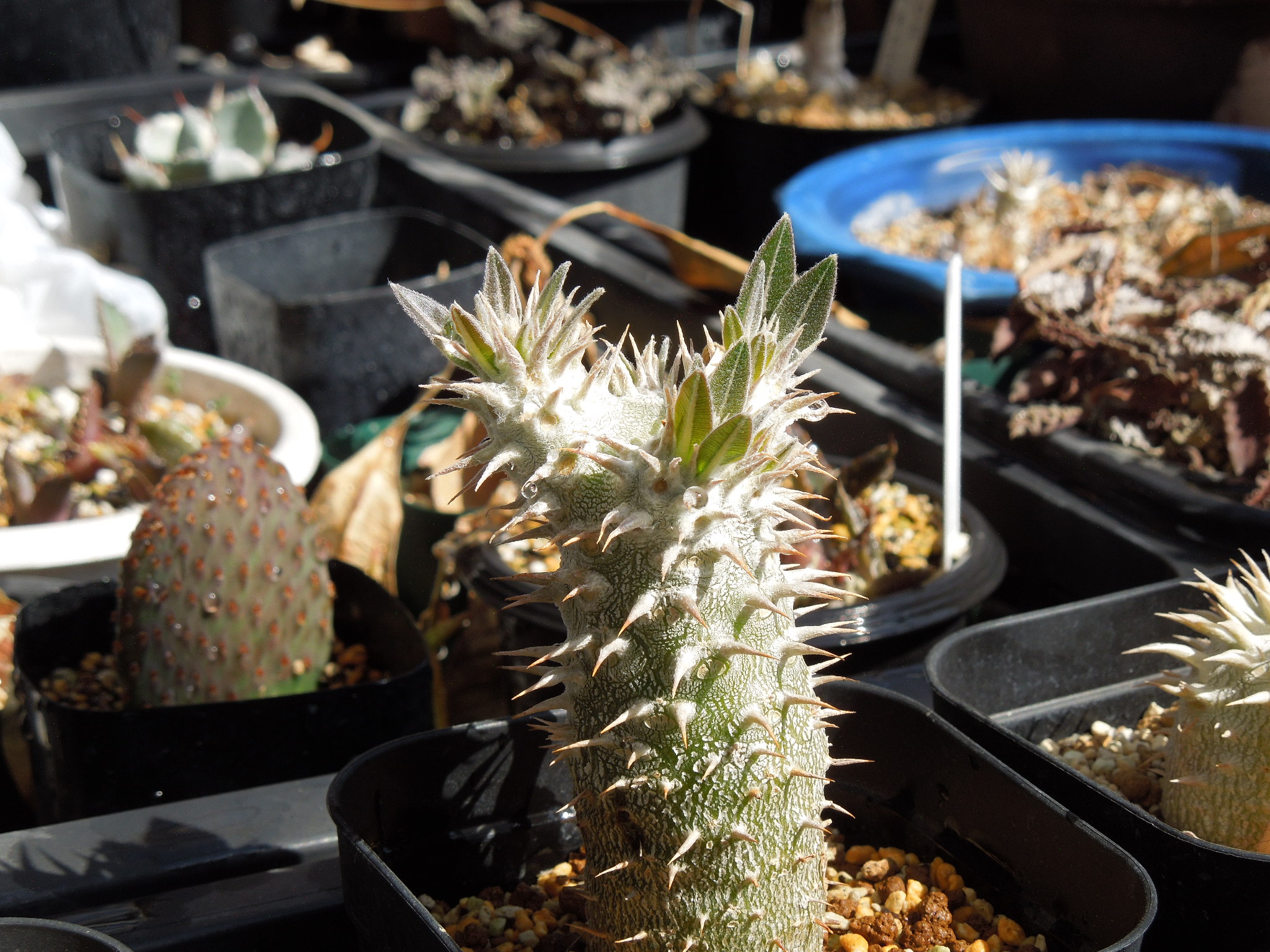 ハウス内はTシャツ1枚で十分な気温。植物の動きが活発になってきた。パキポディウムの実生苗ユーフォルビア・ビグエリー断崖の女王これからは、行く度に変化が見られそう。