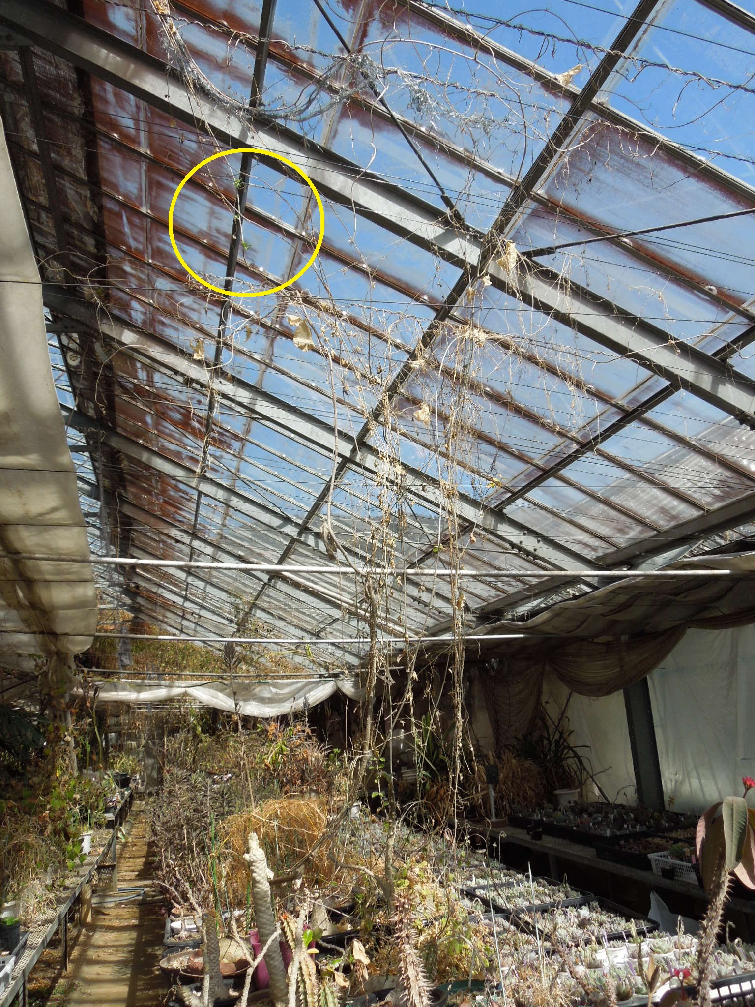 ハウス内では少しずつ植物が動き始めている。ハウスの屋根に近い部分に新葉を発見!蔓を辿ったら、ゲラルダンサスだった。この3株は、koehresから購入した種子からの実生苗。形は三者三様。基本形とか有るのか???ジゴシキオス・プベッセンス今冬は葉を落とさず、ゆっくり蔓を伸ばしながら越冬。
