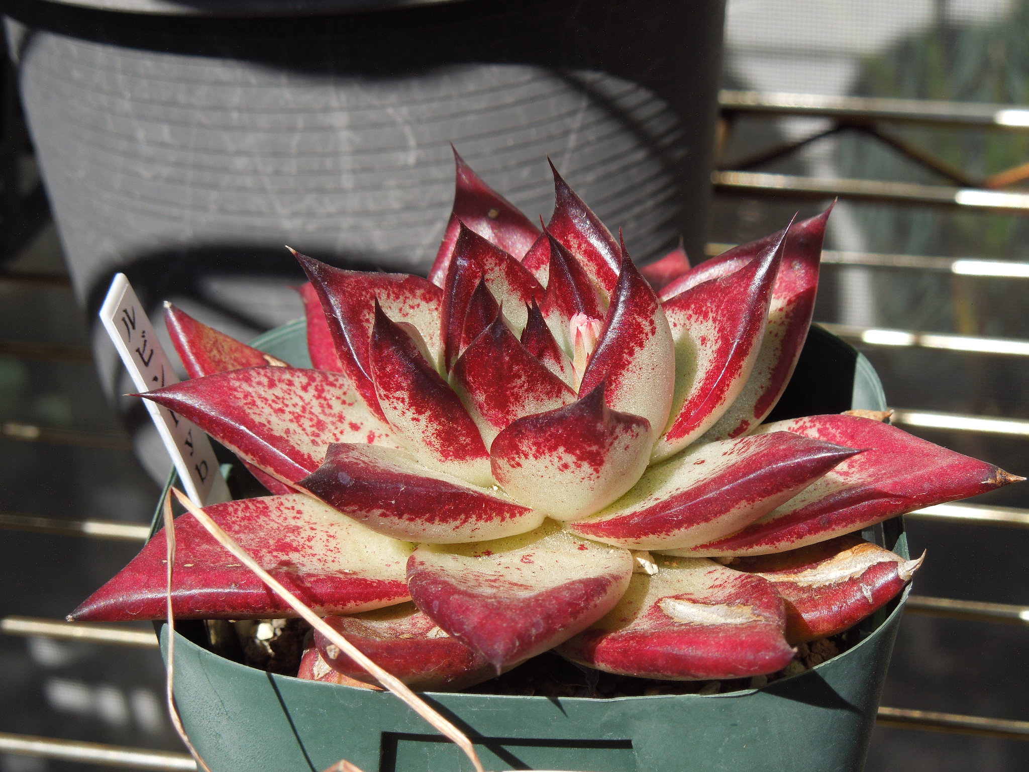 高温多湿の夏季、低温の冬季。その上雨ざらしの劣悪環境にも負けずに・・・3年近く残っているエケベリア。ルビンhybエボニーhyb~隣はアガベ・アルボピローサシムランスこちらは、子株も出ている。パンダ左は、ブラックローズと書かれたタグが挿されていた~(購入した記憶がある)右は、何だか分からなくなってしまった苗。???クリスタルローズ?(左)とチョコレートムース?残っている奴らだけでも、しっかり育てたい!