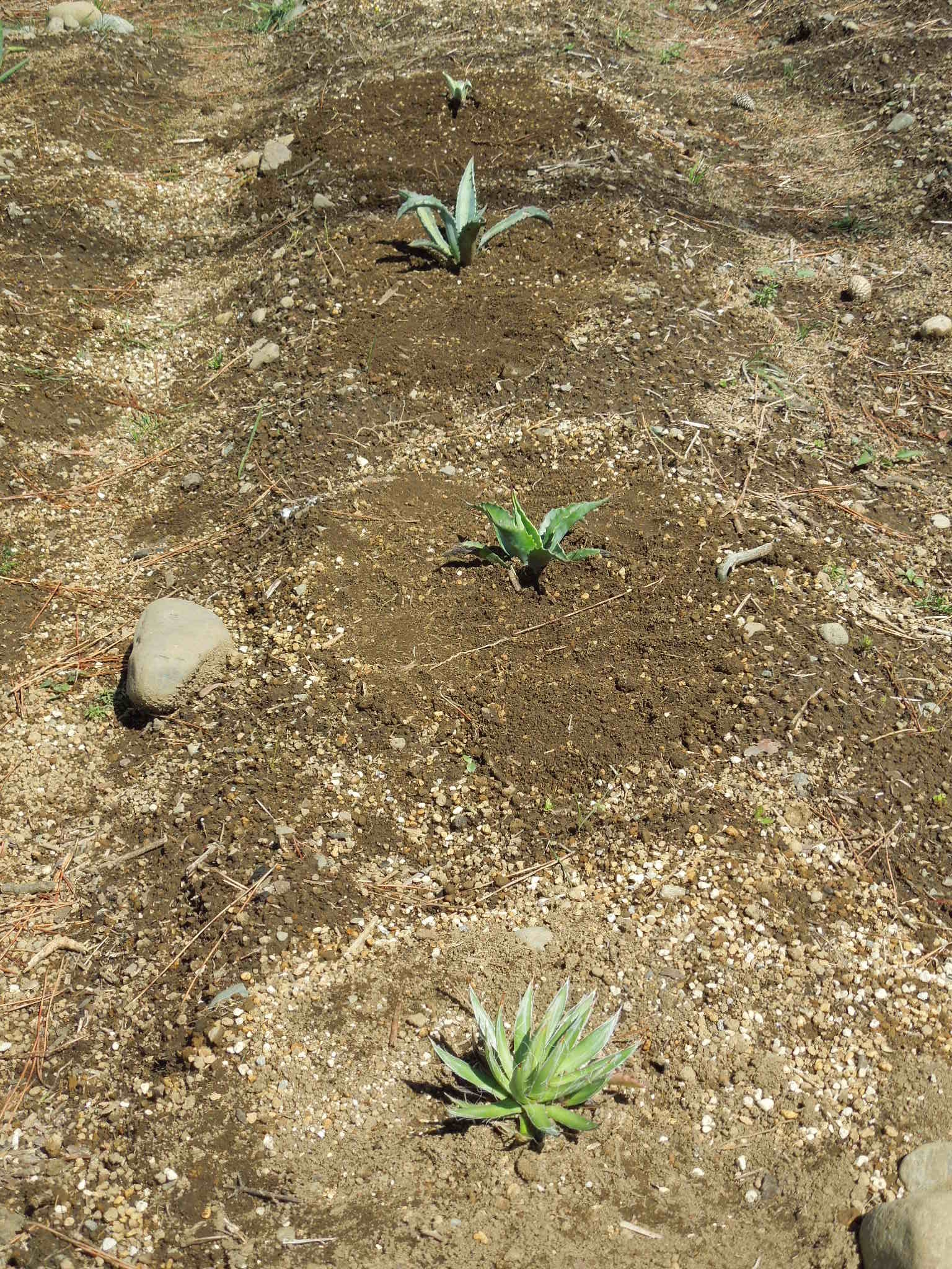 屋外での作業が気持ちいい季節になってきた。暖かくなってきたので、植え付け開始。最初は・・・アメリカーナ”ライムエッジ”奥は、昨秋植え付けたフランゾシニーとフェロックス”ベルビル”(鉢植え)大きめの子株と・・・ユッカの陰で、拗れ気味だった苗。こちらには、子株が3つ付いていた。