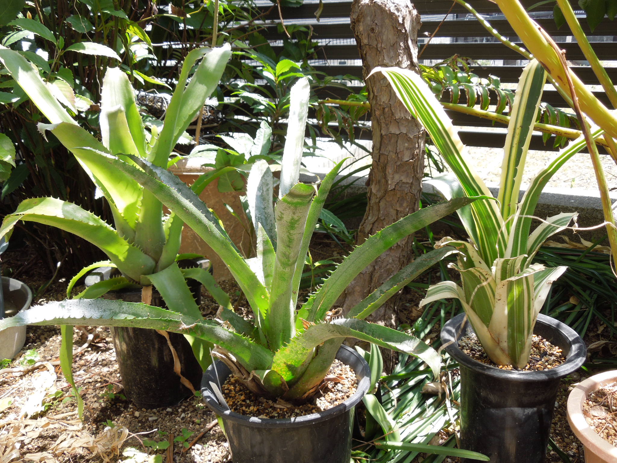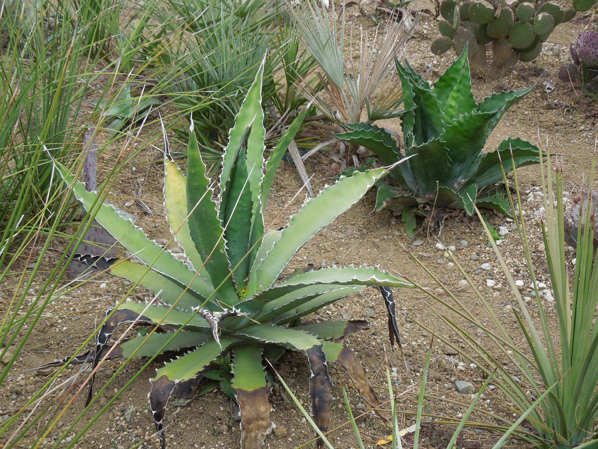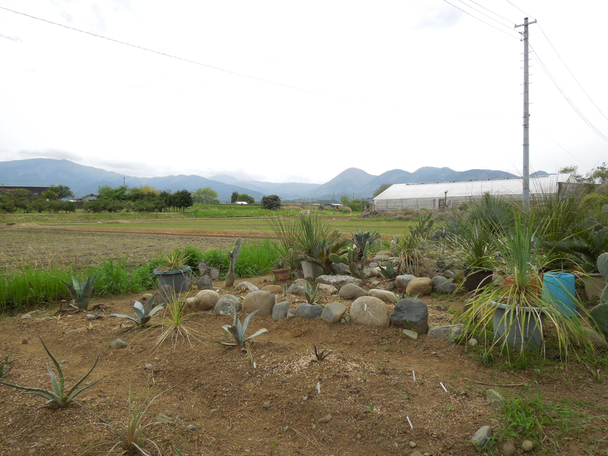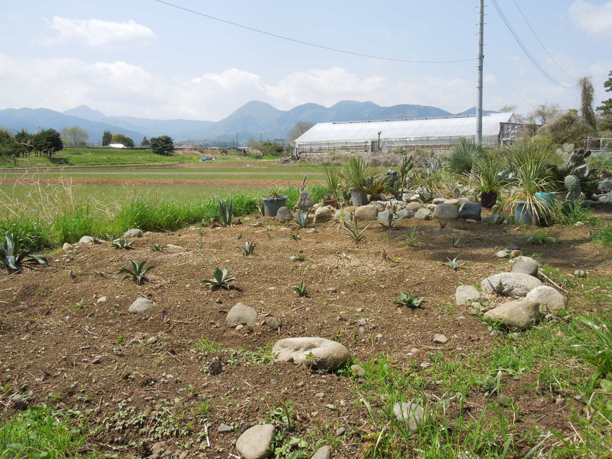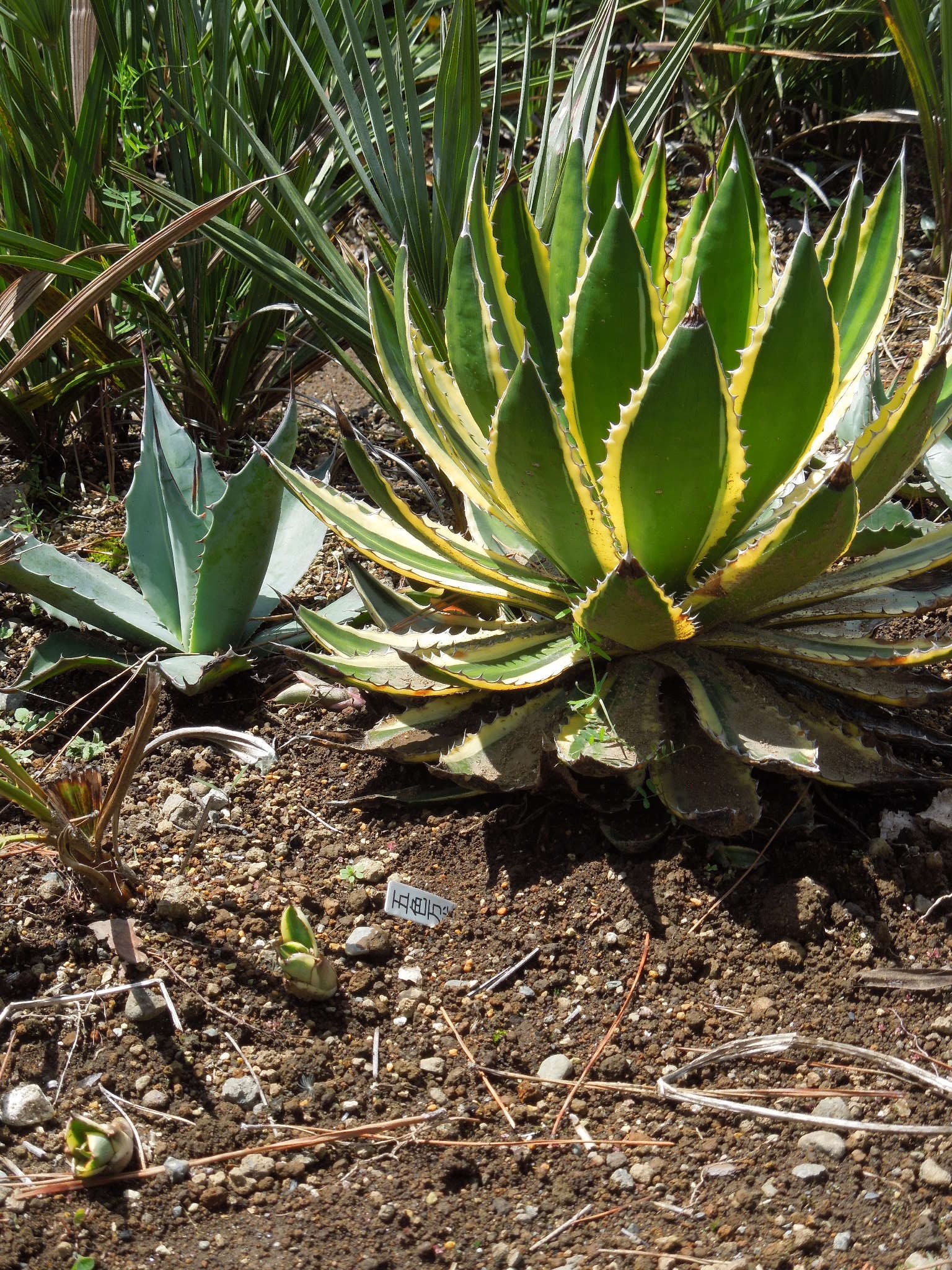 今年も、いくつかアガベを地植えにした。自宅で雨ざらし越冬した小苗とか、外した子株とか・・・大きいアガベは、先日内田農園さんで購入したフェロックス”ベルビル”オバティフォリア、パリー、コロラータ、キシロナカンサ・・・自宅で屋外雨ざらし越冬した、ストリクタ錦と・・・フィリフェラ地植えで越冬した、ピンチラと・・・ニッケルシーオカヒーはだいぶ大きくなった。鉢植えのまま放置していたニッケルシーの実生苗。いくつか、鉢ごと埋めてみた。