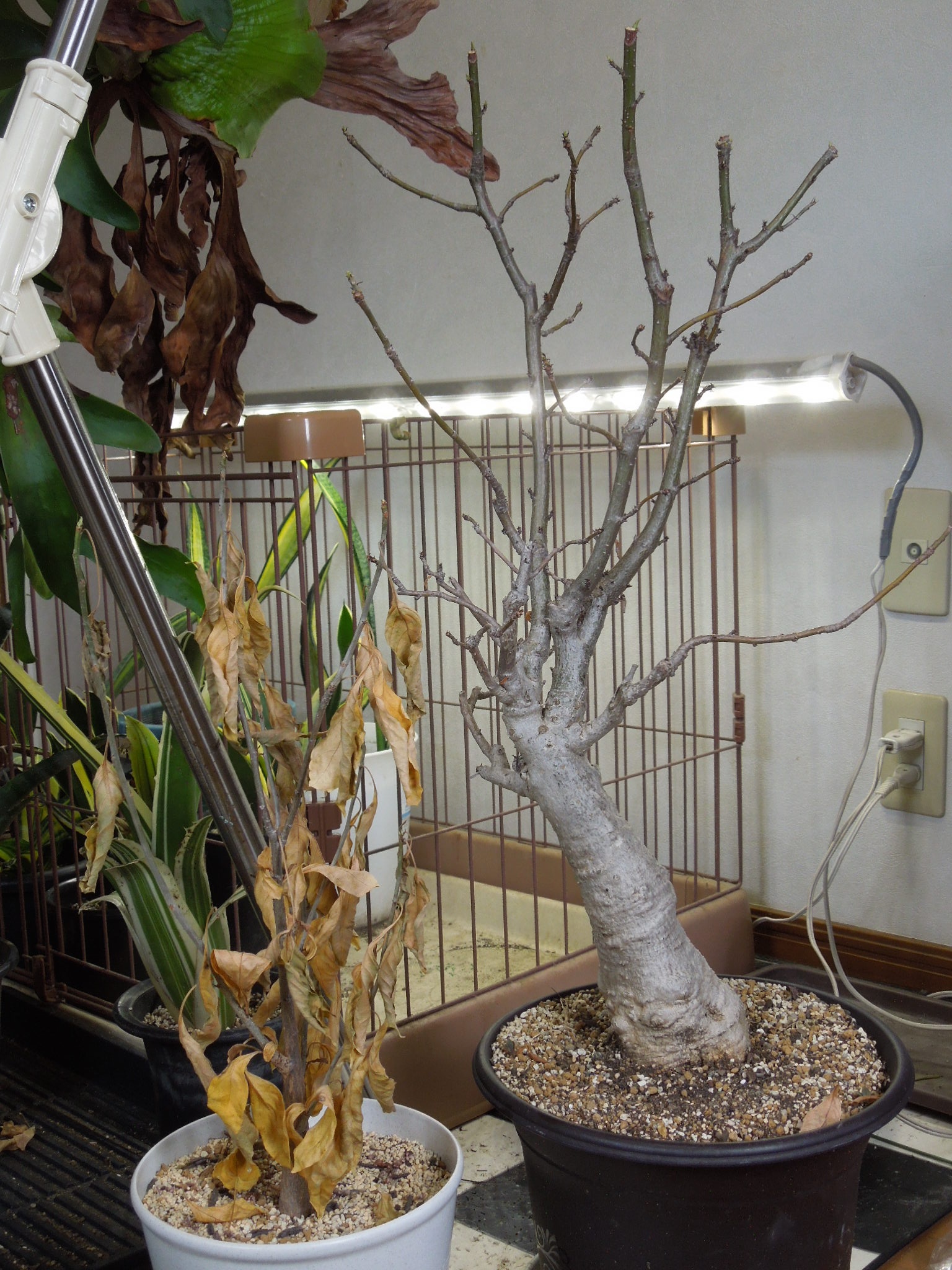 4ヶ月少々断水していたバオバブも、無事に活動開始。2018年に購入したバオバブ。あちこちから新芽が出てきた。用土が盛り上がっている???根が太ってきたのか???植え替え???こちらは、2020年に実生した苗。こちらも、無事に活動開始。少し太くなった。