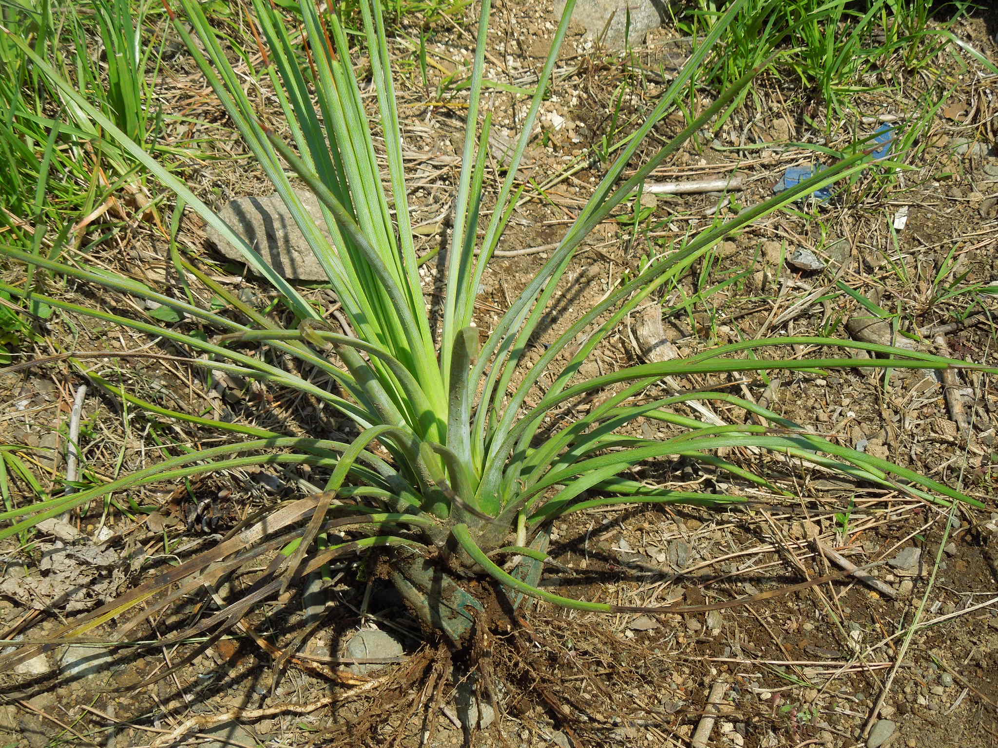 花茎を出していたリギダ。2~3日経っただけでも違いが分かるくらい花茎が育っている。ということで・・・自宅でネグレクト気味の鉢植えリギダ。5年くらい植え替えていないかもしれない。畑のリギダより大きかったのに、現在はかなり見劣りがする。このままではダメになりそうなので、畑に持って行った。酷い根鉢。抱き込んでいた鉢底石を取り除いて・・・根を、少しほぐして・・・先日ダシリリオンを堀上げた跡に植え付け。畑の土は、適度に湿っている感じだった。水は遣らないで、このまま様子見。