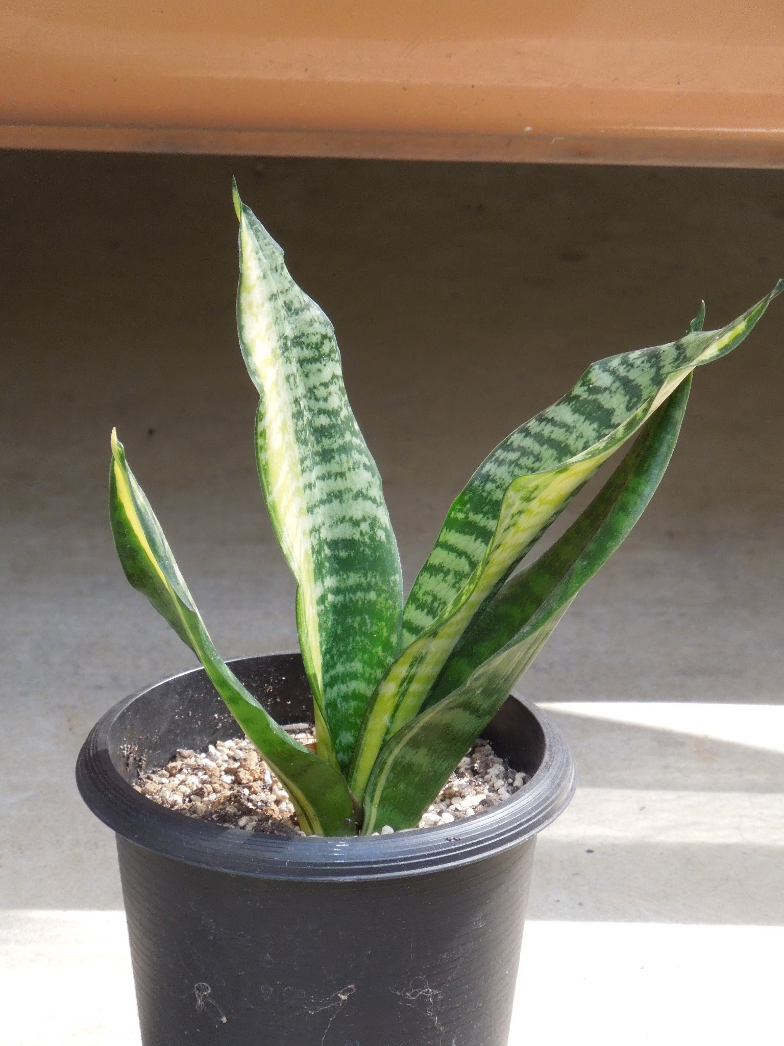 サンスベリアも屋外に出した。出すついでに・・・一番小さい鉢に植えられていたフツーラを植え替え。一昨年10月に植え付けた苗なので、根はこんなものだろうか・・・4.5号から5号鉢に植え替え。昨年と同じ、玄関先軒下に置いて・・・タップリ潅水。マッソニアーナ~縞斑と白中斑。縞斑は毎年1枚ずつ葉を出しているが・・・白中斑は昨年は葉を出さなかった。1枚だけ残っているのは、一昨年出た葉。最初の葉は、枯れて無くなった。ブラックフレームフツーラカリフォルニア