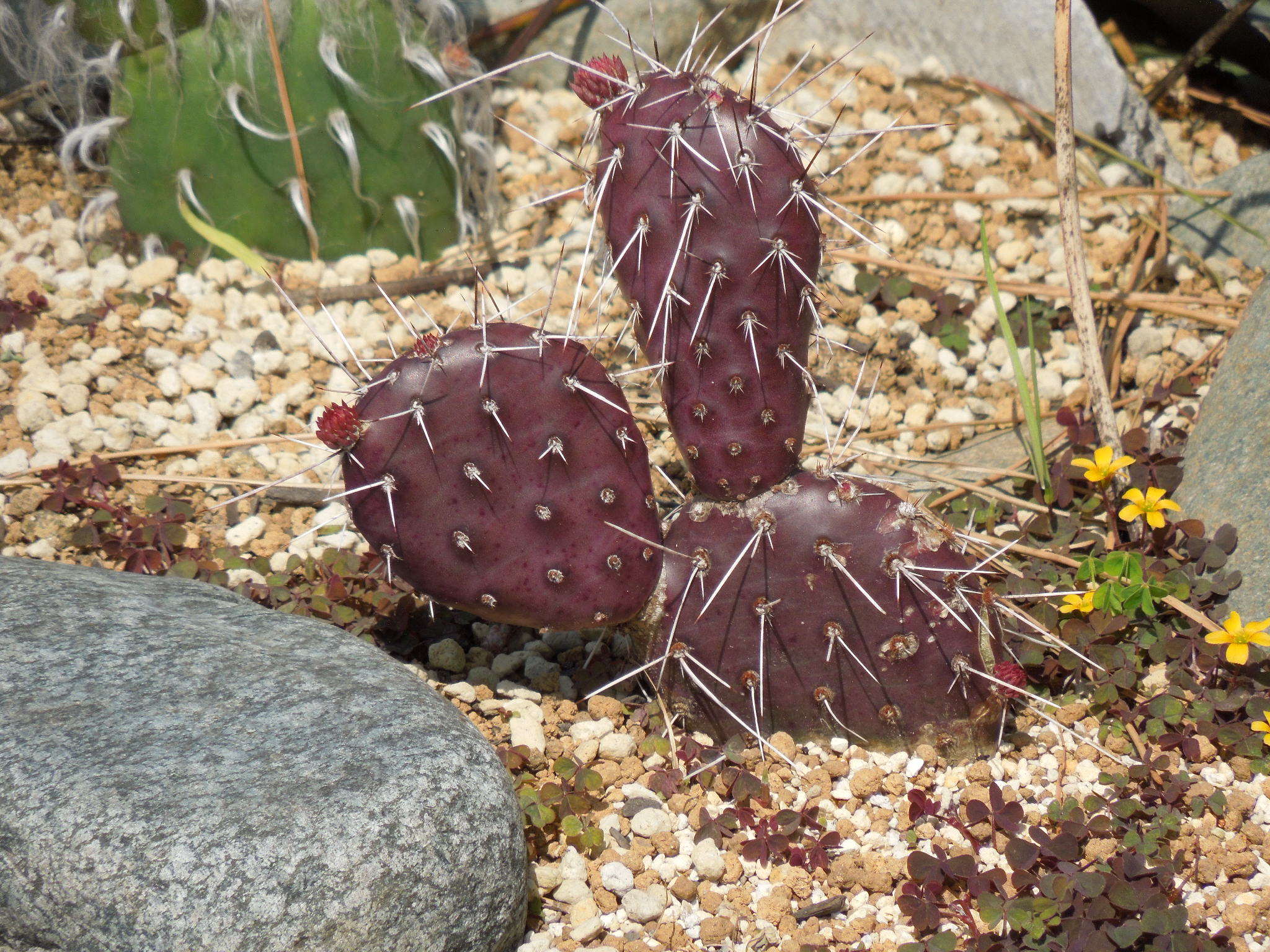 サンタリタに続いて・・・他のオプンチアも動き始めた。ダークナイト新芽は5つ???一番小さいダークナイト水を吸って・・・パッドがプリプリ。もう1つは・・・まだ、お休み中?シワだらけだが、大丈夫か???