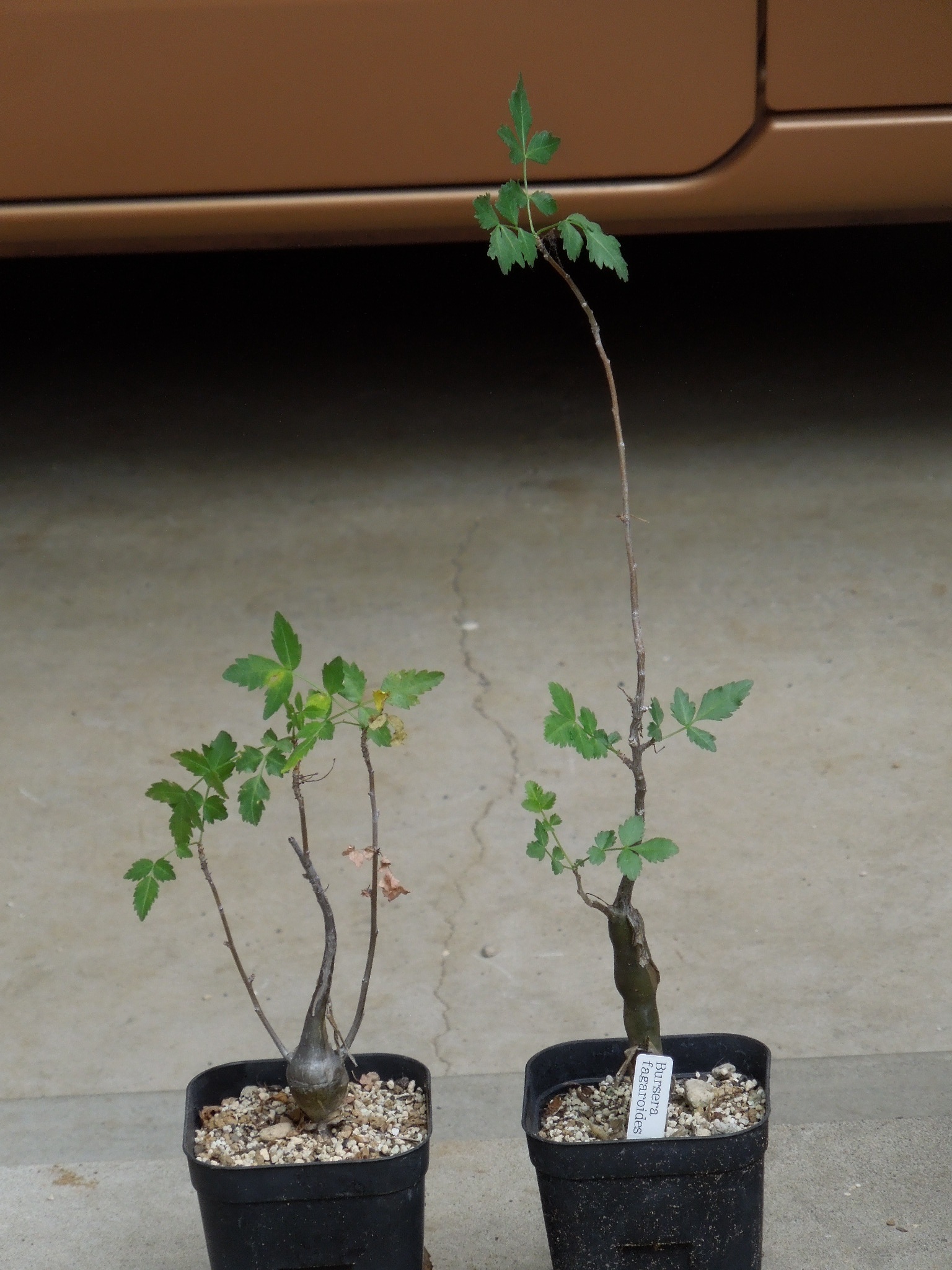 一昨年の5月に購入したブルセラ・ファガロイデスの実生苗。購入して直ぐに植え替えているので、2回目の植え替え。あまり変わっていないようだが、購入時と比べると・・・表皮も剥がれ始め、幹も少し太くなっている。植え替えてから約2年経っているが・・・根は、こんな感じで良いのだろうか???小さい塊根???もう1本。こちらの方が、少し根が多いか???しっかりとした塊根も出来ている。生長に期待して、大きめの鉢に植え替え。プレステラ90深鉢→4号くらいの深鉢
