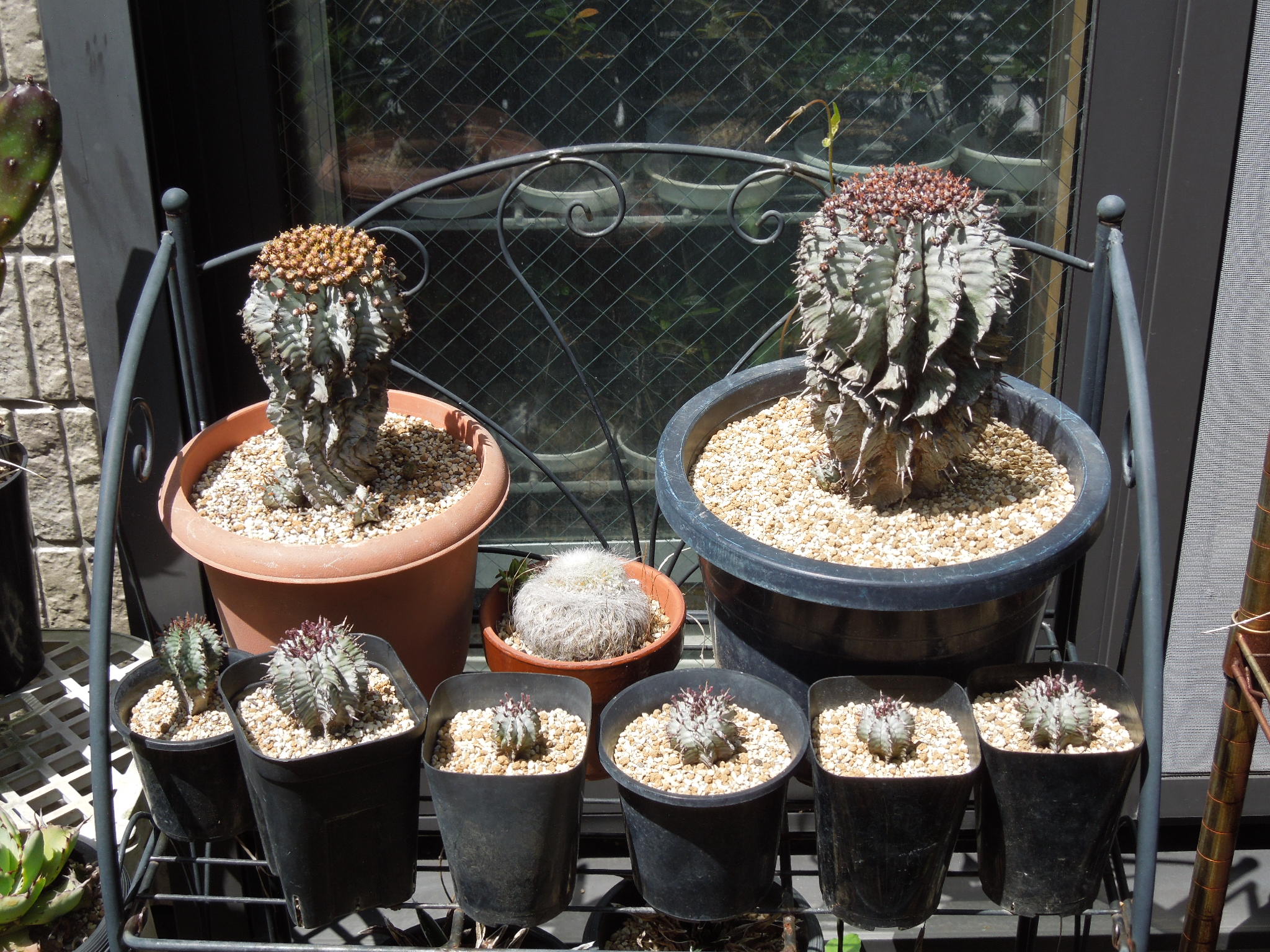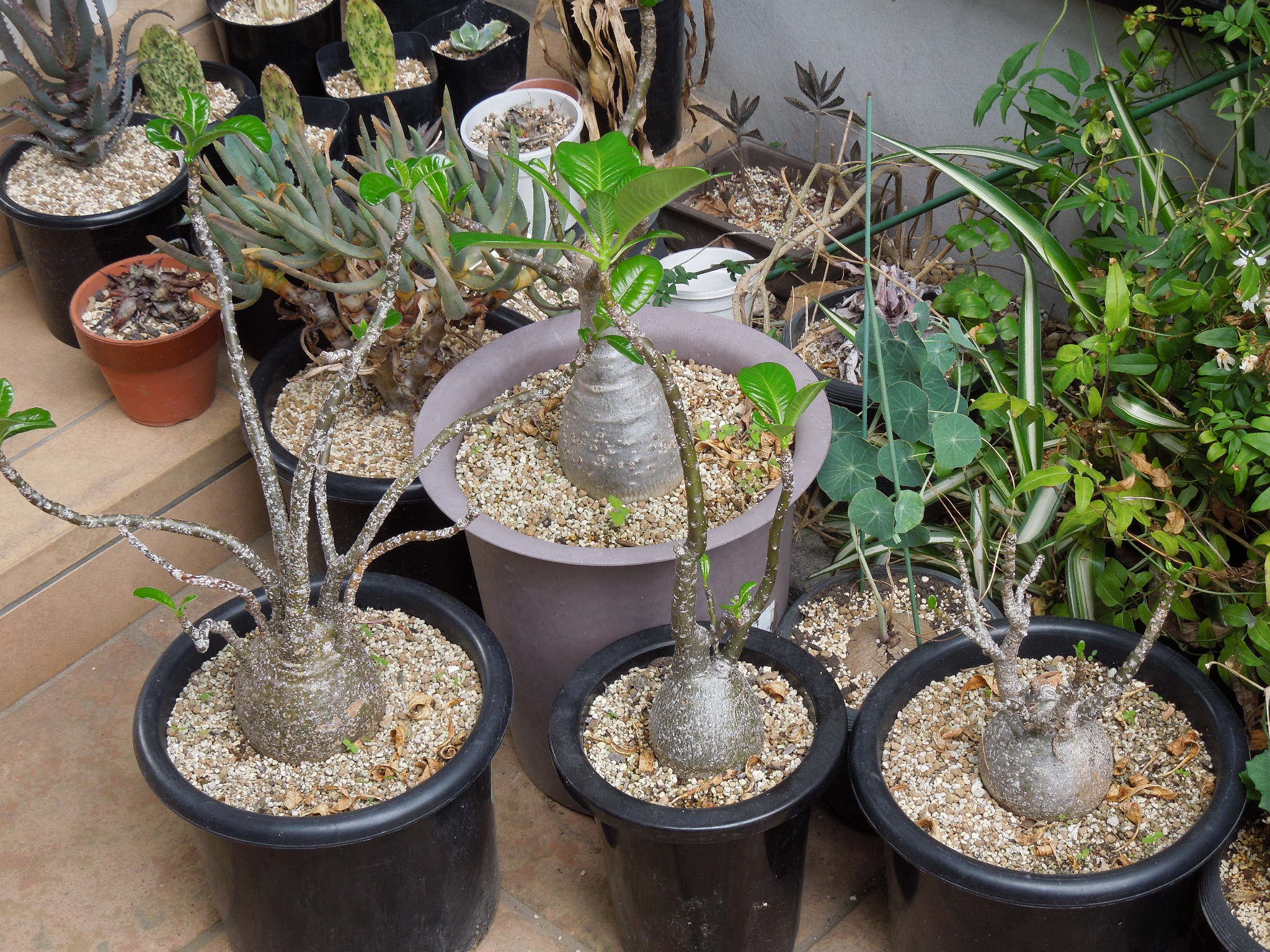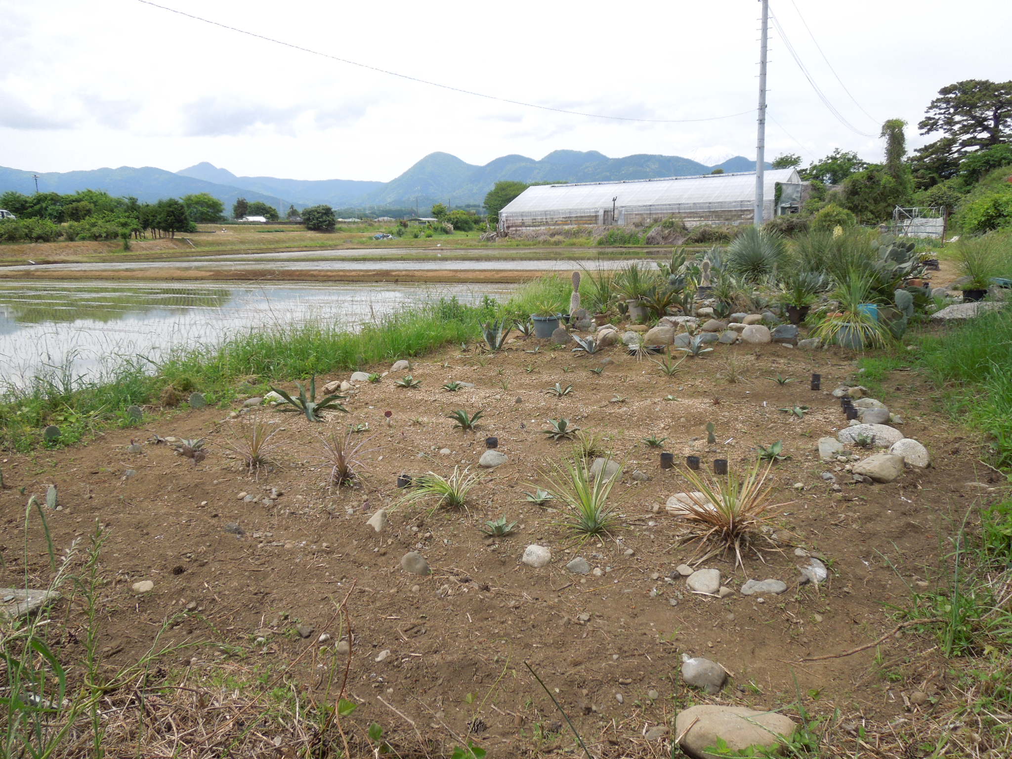 富士山の雪が少なくなってきた。日差しは少なくても、蒸し暑い。今日は軽作業。昨年、地面に直置きしたウィンゾリーが、鉢底から根を出して良く育ったので・・・今年も、鉢をいくつか畑の隙間に置いてみた。先日植え替えた・・・アデニウム・アラビカム・デザートナイトフォークドルステニア・ギガス(挿し木苗)パキポディウム・ウィンゾリーとバロニー晩秋までは、このままの予定。どうなるか・・・
